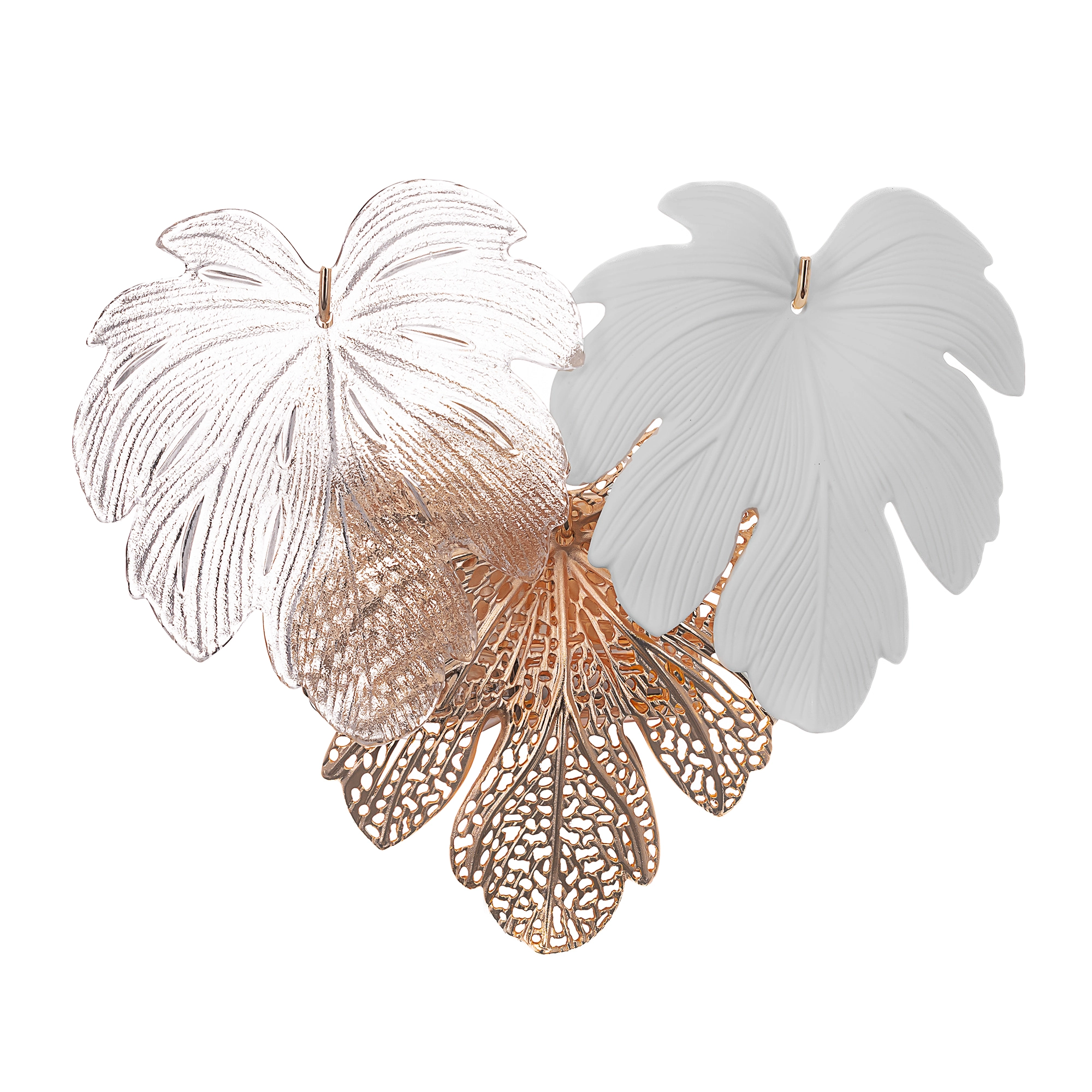 Металлический каркас благородного золотого оттенка дополняют изумительные стеклянные листья, которые формируют утонченный силуэт бра. В светильнике используются 3 лампочки с цоколем E14, максимальная мощность каждой — 60Вт для ламп накаливания.