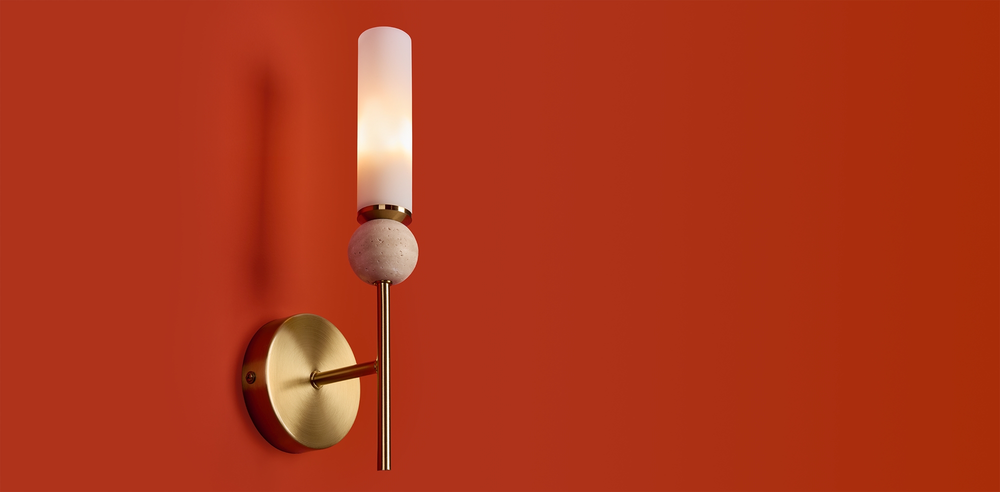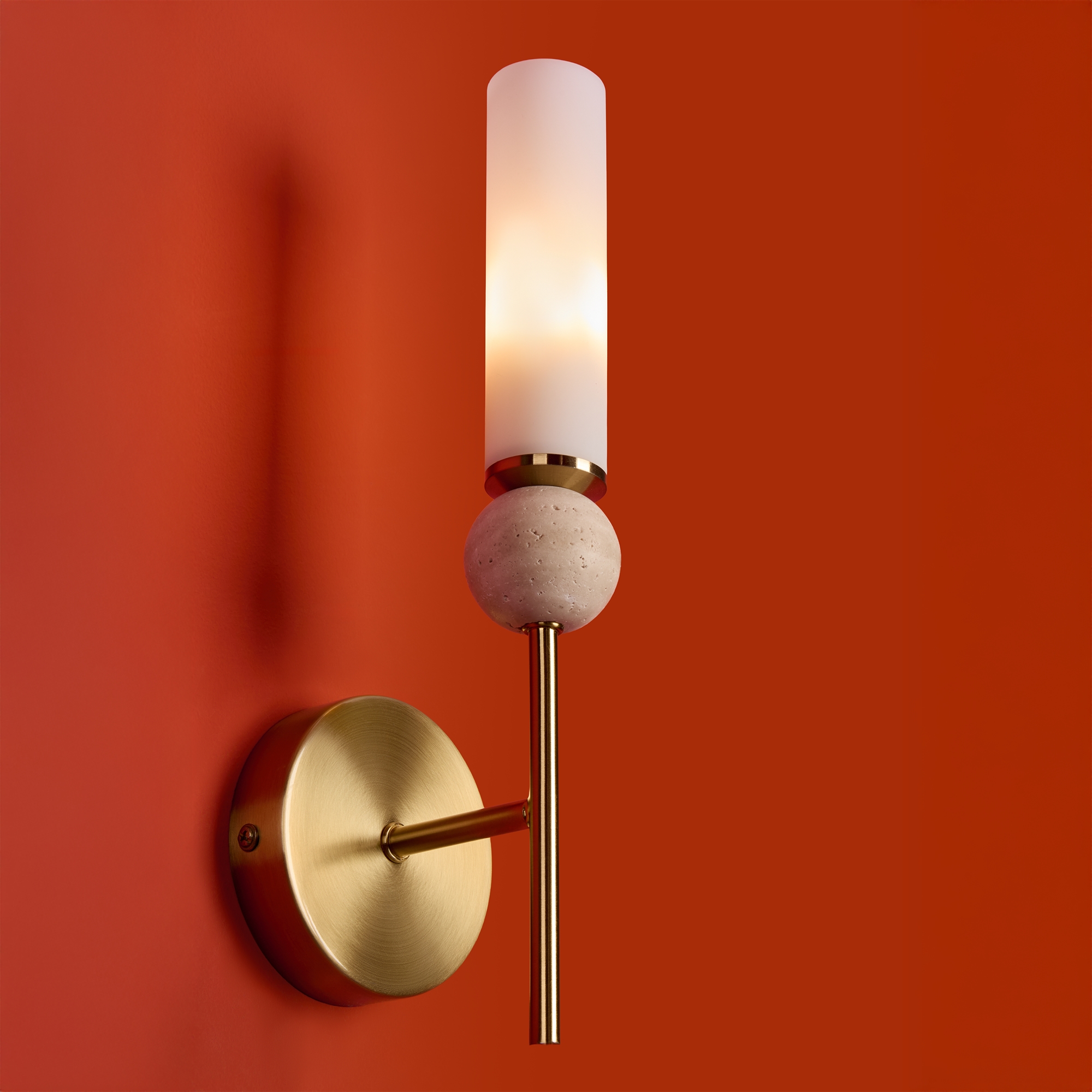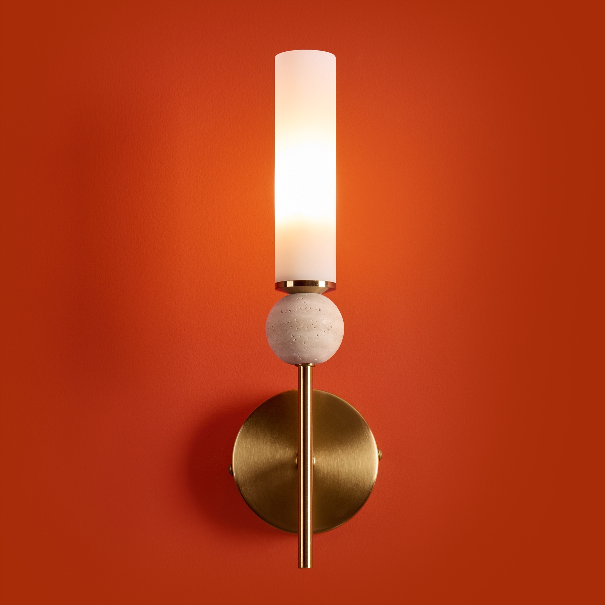 Серия Sunspot использует камень травертин как основной декоративный элемент. Настенные бра в двух вариантах: с матовым белым стеклянным плафоном и со «скользящим» теплым светом. Отличительная черта бра: увеличенный размер плафона и сенсорное включение/выключение без диммирования. Подвесные светильники имеют прозрачные стеклянные плафоны с декоративными шариками из камня травертин. Sunspot включают три модели подвесов разных размеров и форм стеклянной окантовки на плафон. Арматура — металл латунного и черного цвета Источники света LED 3000K и цоколь G9. Настольная лампа с touch переключателем . Серия создает комплексное зональное и акцентное освещение, подходящее для создания уютной атмосферы.