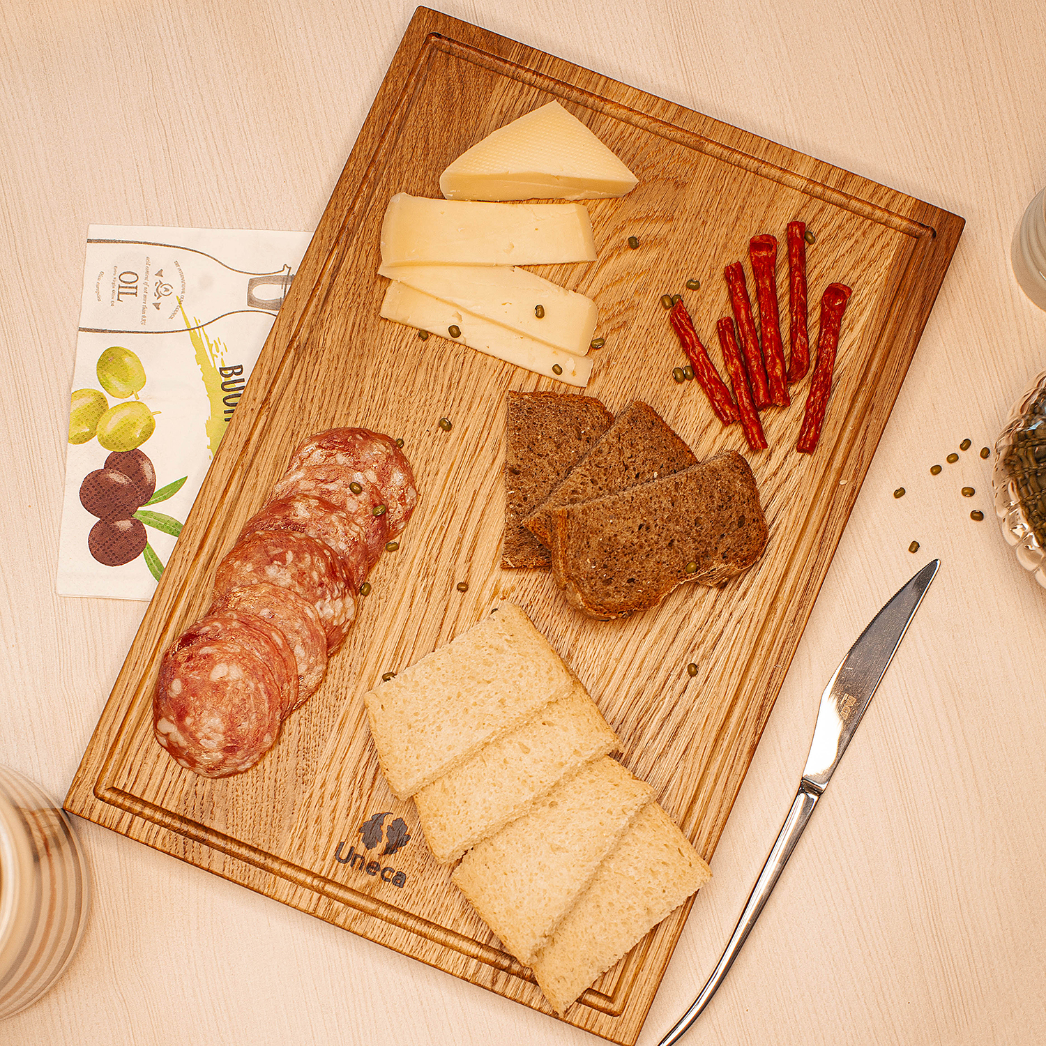 Купить "Доска разделочная прямоугольная 37х25х1,8 см деревянная, дуб Uneca"