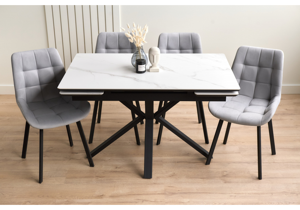 Материал каркаса - металл; Материал столешницы - Керамика; Цвет ножек - черный; Ширина - 80; Высота - 75; Длина стола в разложенном виде - 180; Длина - 120;