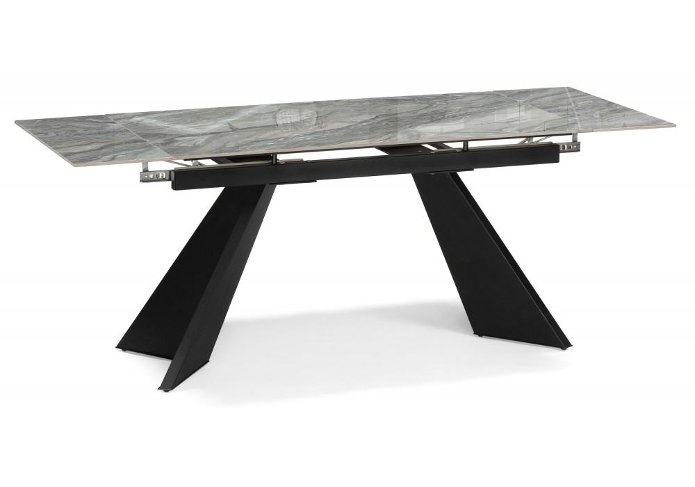Расстояние между ножками: 60 смТолщина столешницы: 2 см. Материал каркаса - Металл / МДФ; Материал ножек - Металл / МДФ; Материал столешницы - Керамика; Цвет каркаса - Черный; Цвет ножек - Черный; Цвет столешницы - Серый; Цвет подстолья - Черный; Ширина - 80; Высота - 78; Длина стола в разложенном виде - 200; Длина - 140