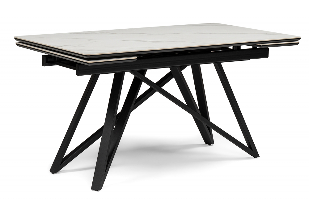 Купить "Керамический стол раскладной Woodville Вилсон 140(200)х80 белый мрамор snow white / черный 612175"