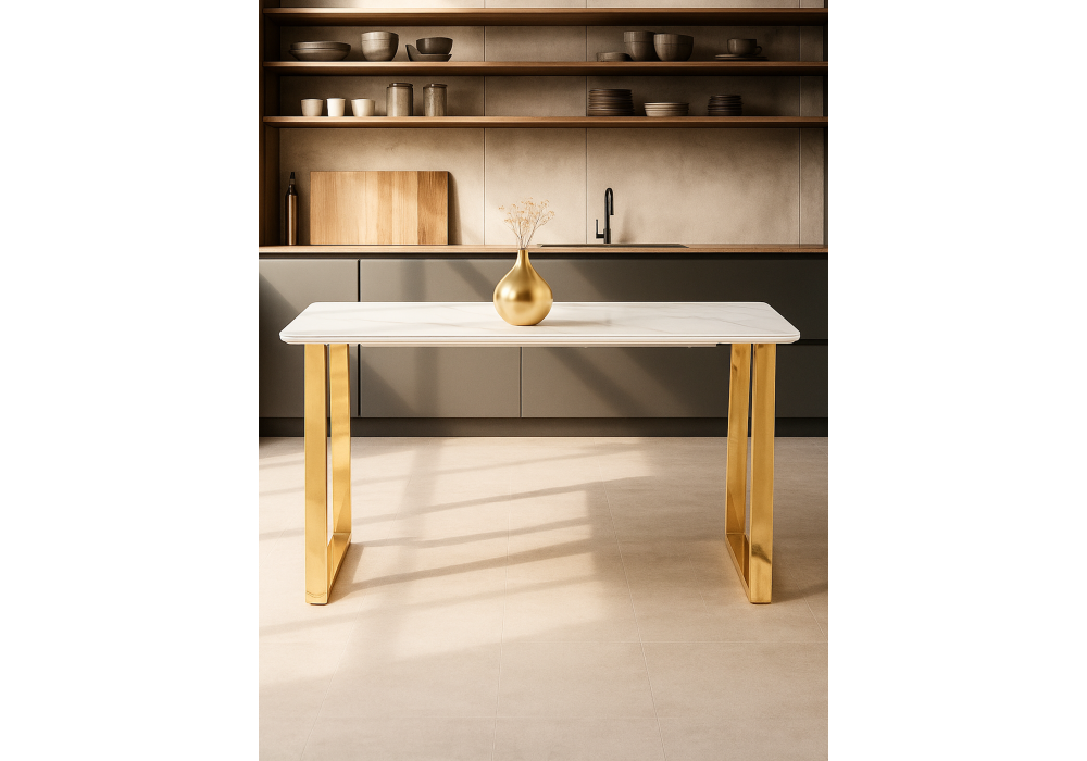 Керамический стол Woodville Селена 2 140х80х77 белый мрамор / золото 571412 во Владивостоке