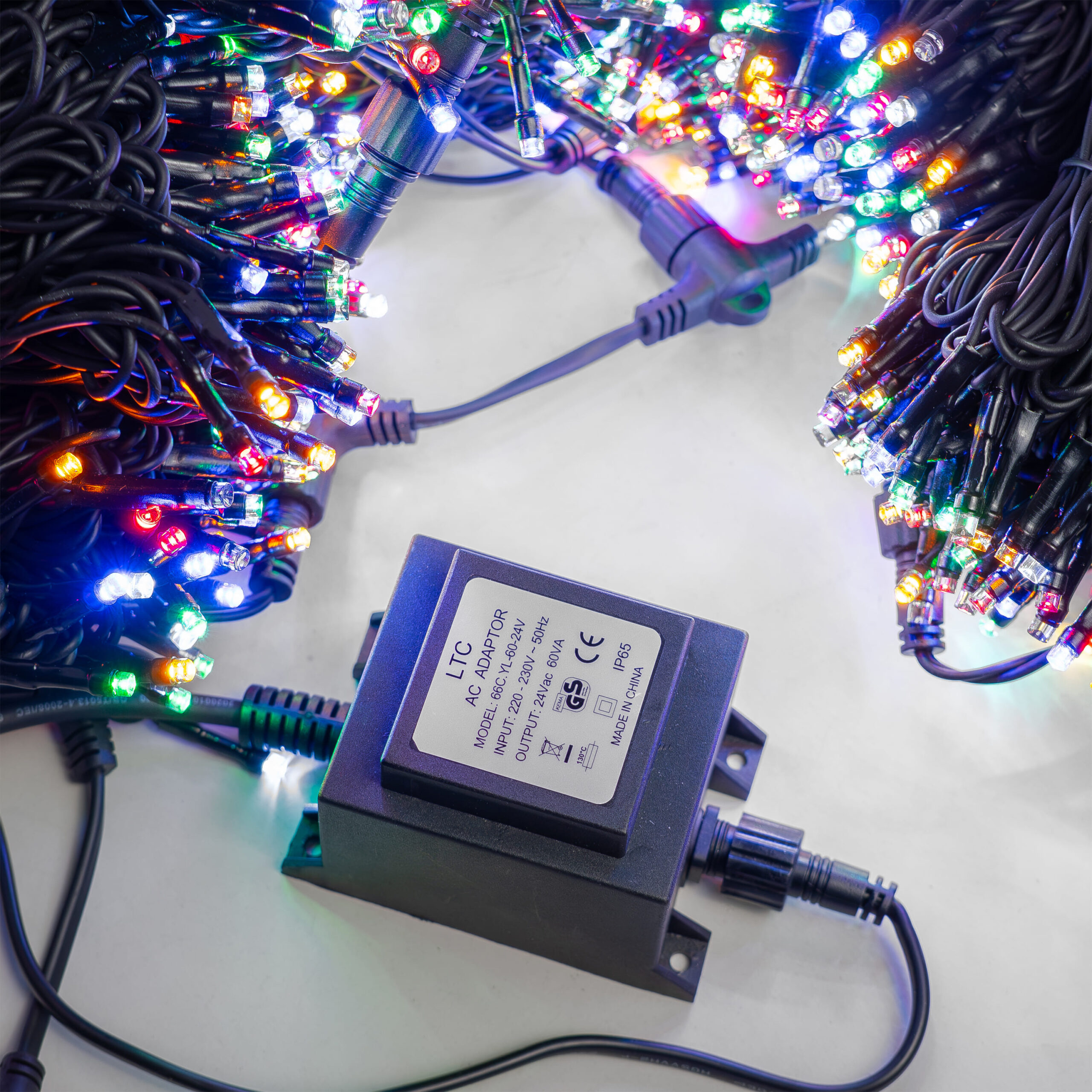 Купить "Комплект 5 Разноцветных Нитей по 20м с Мерцанием Белого Диода, 1000 LED, Провод Черный Каучук 2,3мм, IP54 LTC ECO1000BLW-1-1M"