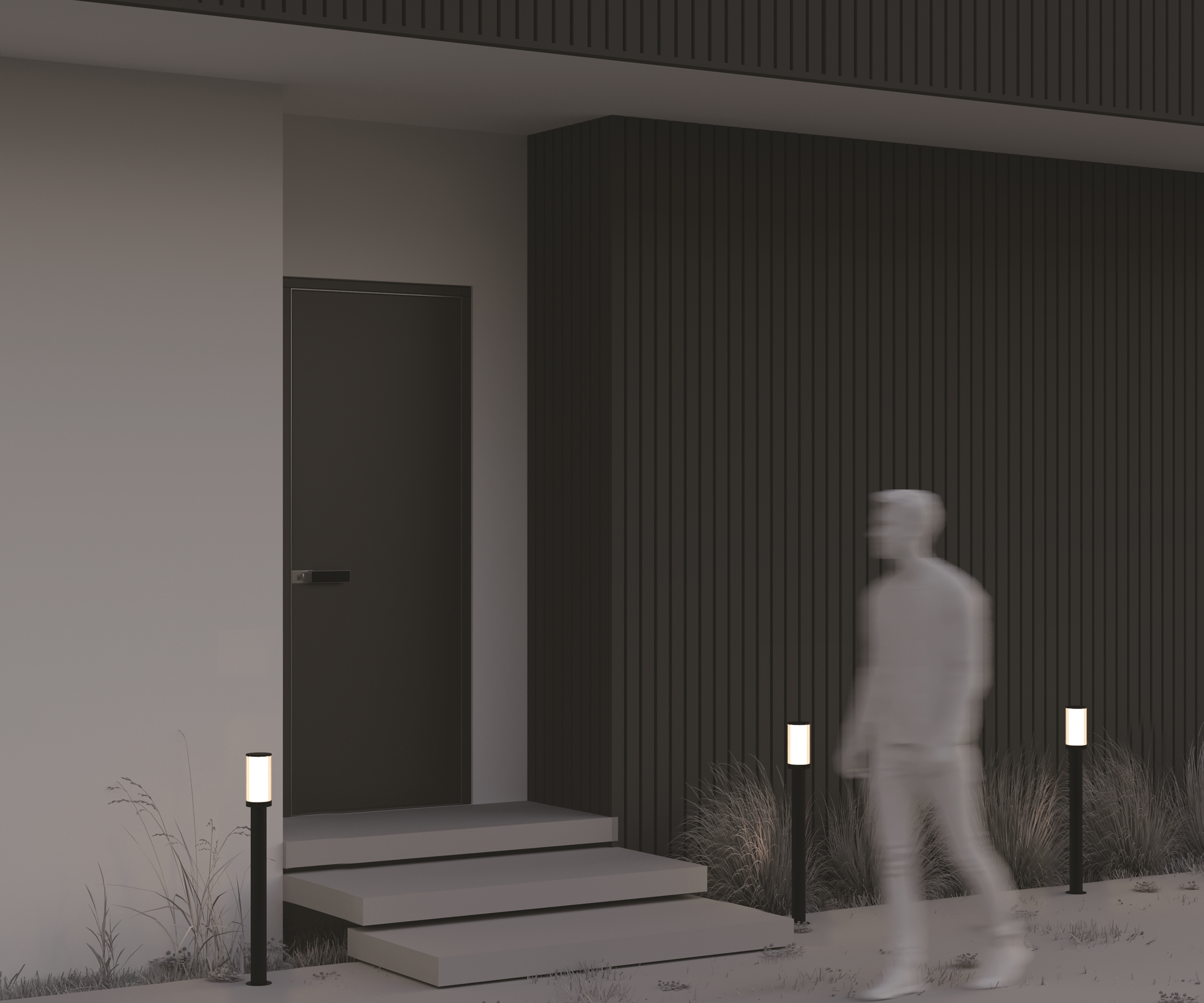 Материал арматуры - алюминий, цвет - черный. Плафон из пластика. Источник света - лампа с цоколем E27, мощность 23Вт. Высота 800 мм. Настенный и ландшафтные светильники для уличного использования.