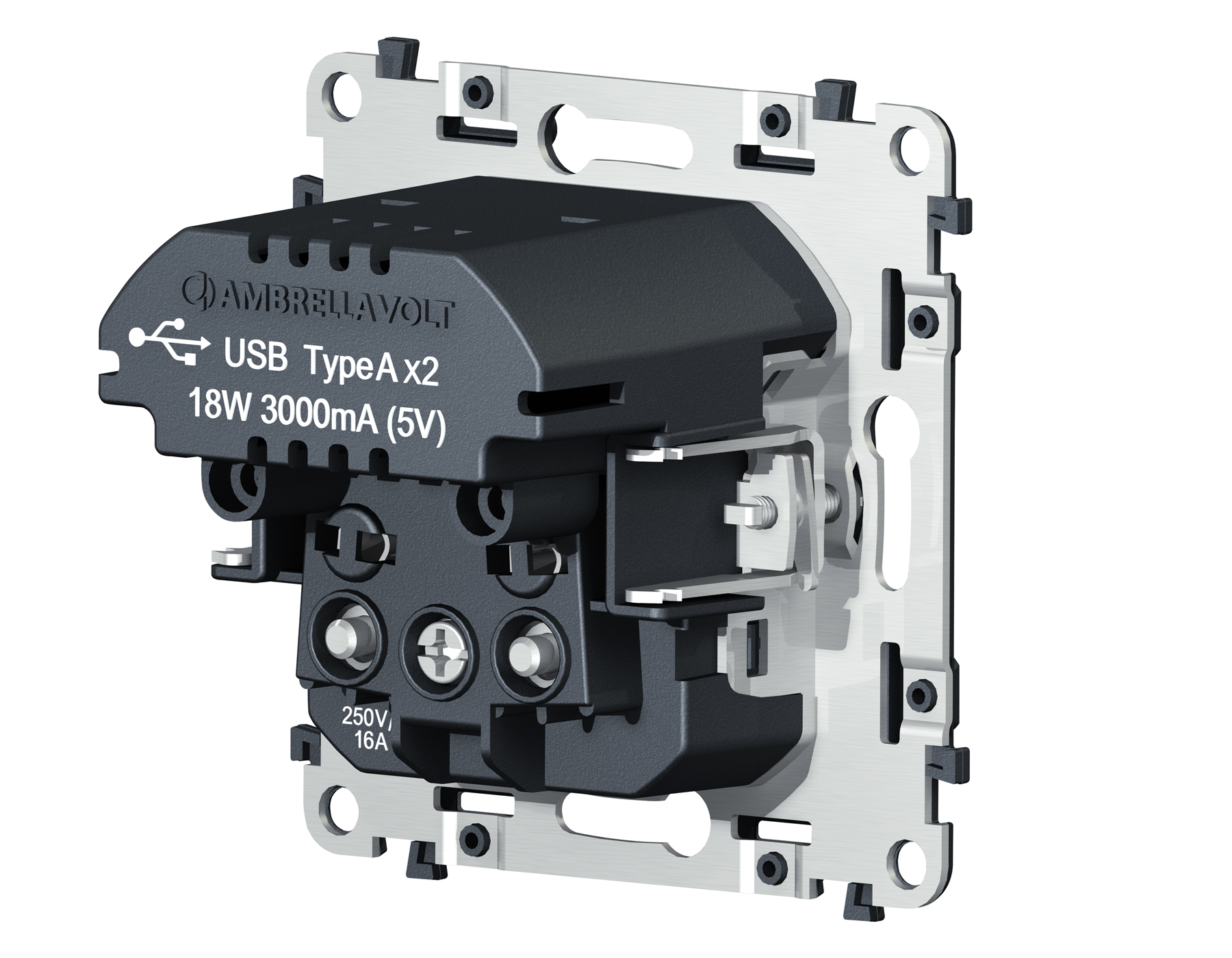 Купить "Механизм электрической розетки Type С+C 20W быстрая зарядка с заземлением на винтовых зажимах 16A-250V Ambrella Volt Quant QUANT VM165"