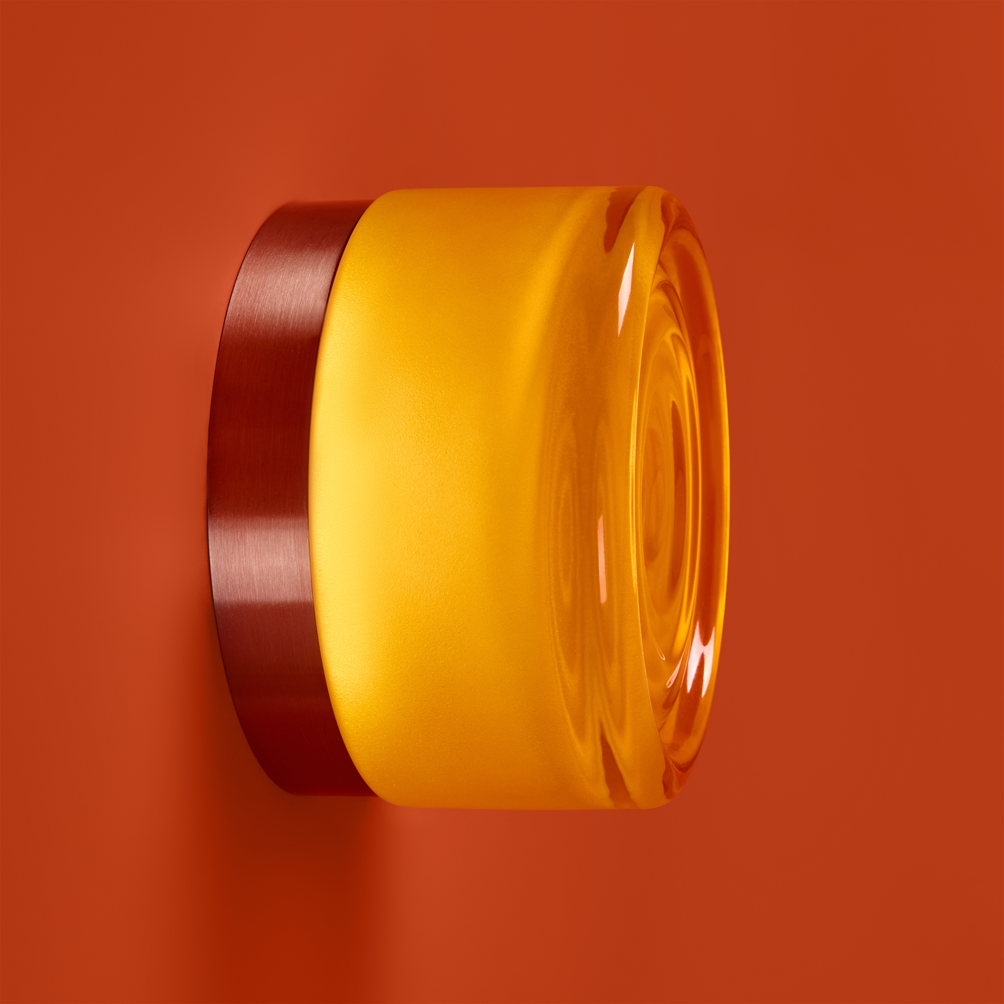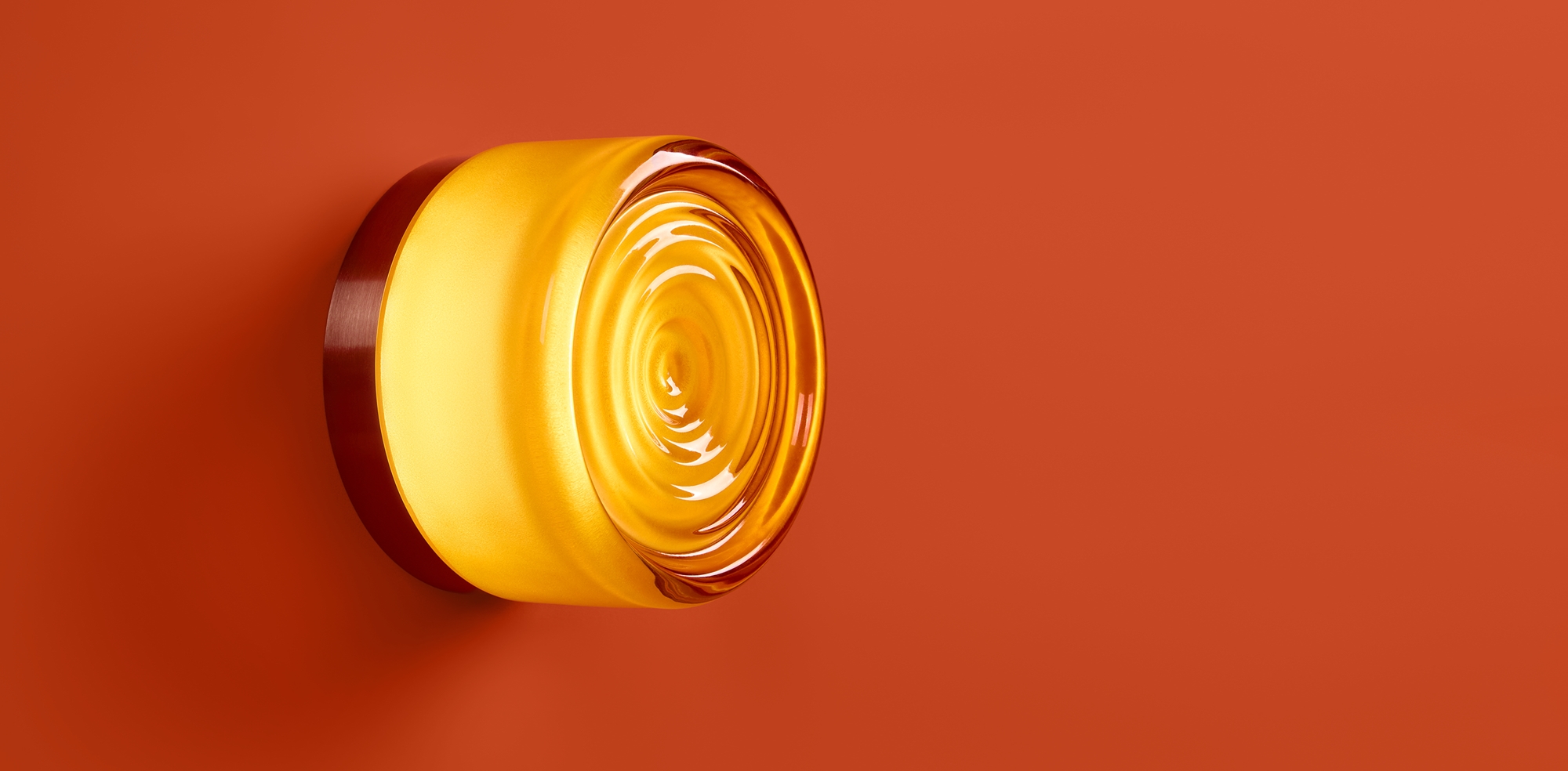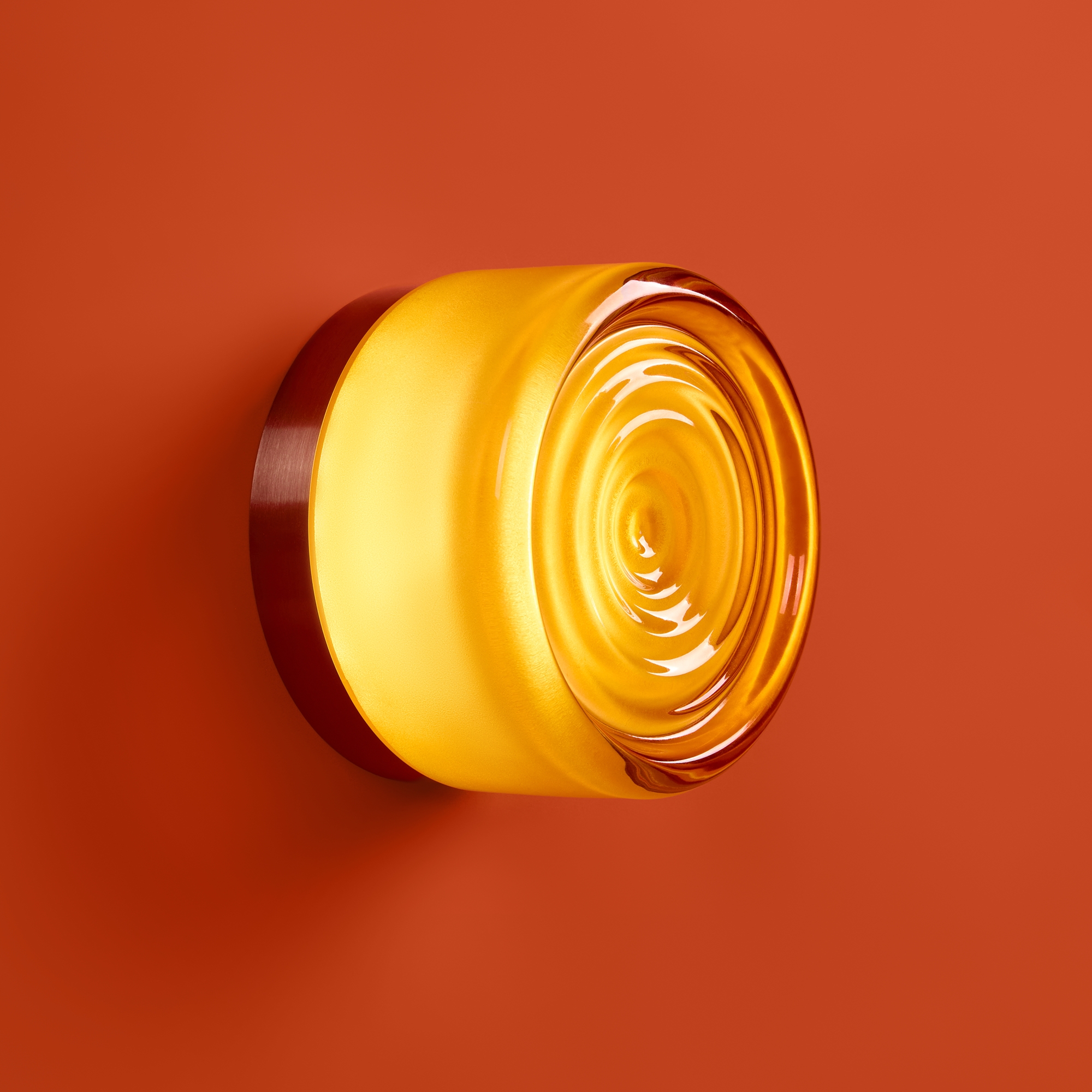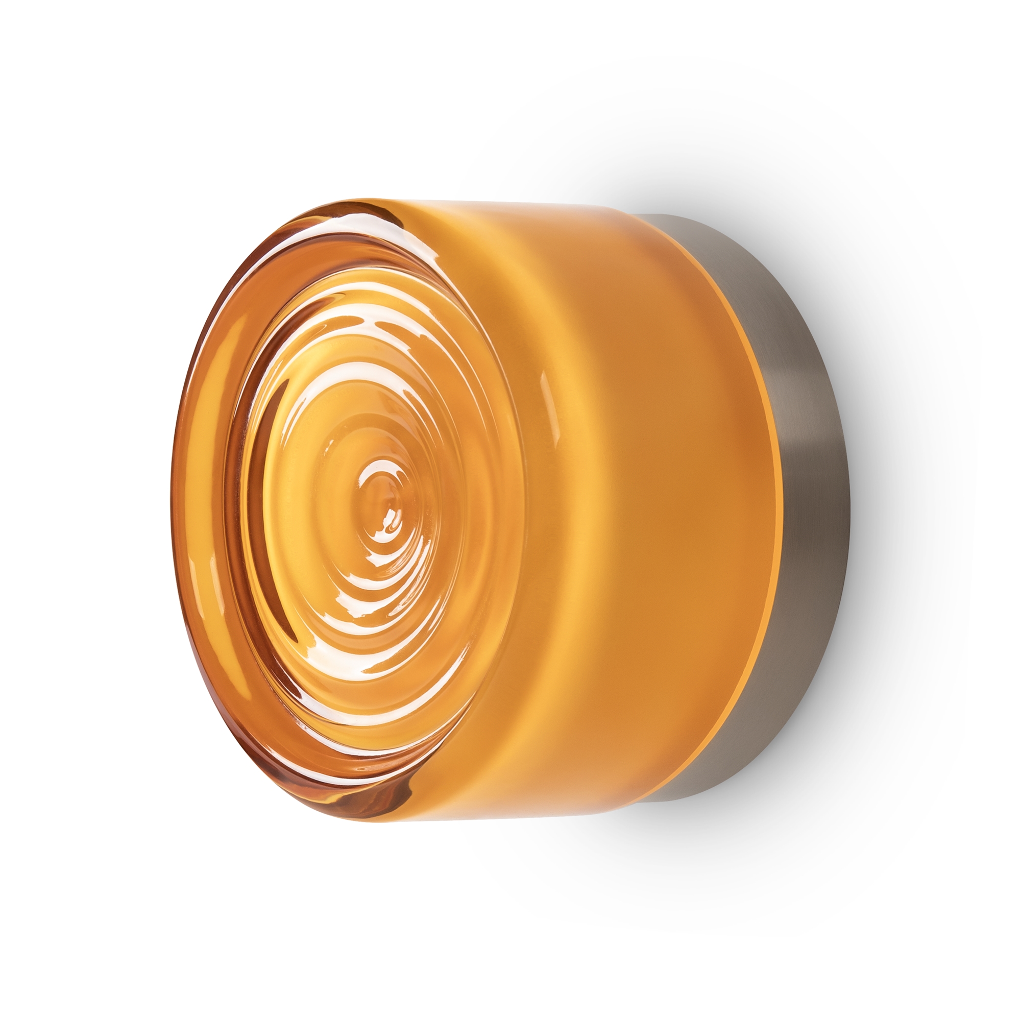 Металлическая арматура в цвете никель в трех рельефных основаниях. Плафоны, выполненные в приглушенно пшеничном и янтарном оттенках, доступны в двух размерах. LED источник света 2400К/2550К/3000K.