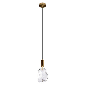 Лаконичное сочетание матового золота, прозрачного «камня» и чёрного акцента делает светильник универсальным: он легко вписывается в современный интерьер, лофт, минимализм или эклектичную обстановку. Хорошо смотрится как одиночный акцент над прикроватной тумбой или небольшим столиком, а также впечатляюще выглядит в композиции из нескольких подвесов, расположенных на разной высоте.