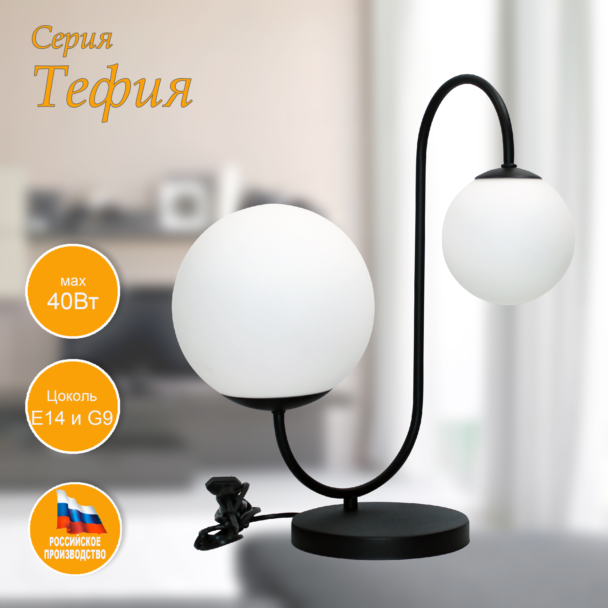 Потрясающая Настольная лампа из Коллекции " Тефия " отлично подойдет для установки в комнате, оформленной в современном стиле. Рекомендуемая площадь освещения - 5 м2. Источник света - лампы накаливания мощностью до 40 Вт, а также светодиодные лампы или энергосберегающие лампы. Цоколь лампы в светильнике Е14 в большом шаре и G9 в малом шаре. Плафоны выполнены из красивого опалового стекла ручной работы - это позволяет получить мягкий и рассеянный свет . Светильник дает максимум света и оптимально вписывается в интерьер и создает уют в помещении, будь то гостиная или спальня. Данную модель 1005405128 можно купить в интернет магазине 220svet.ru