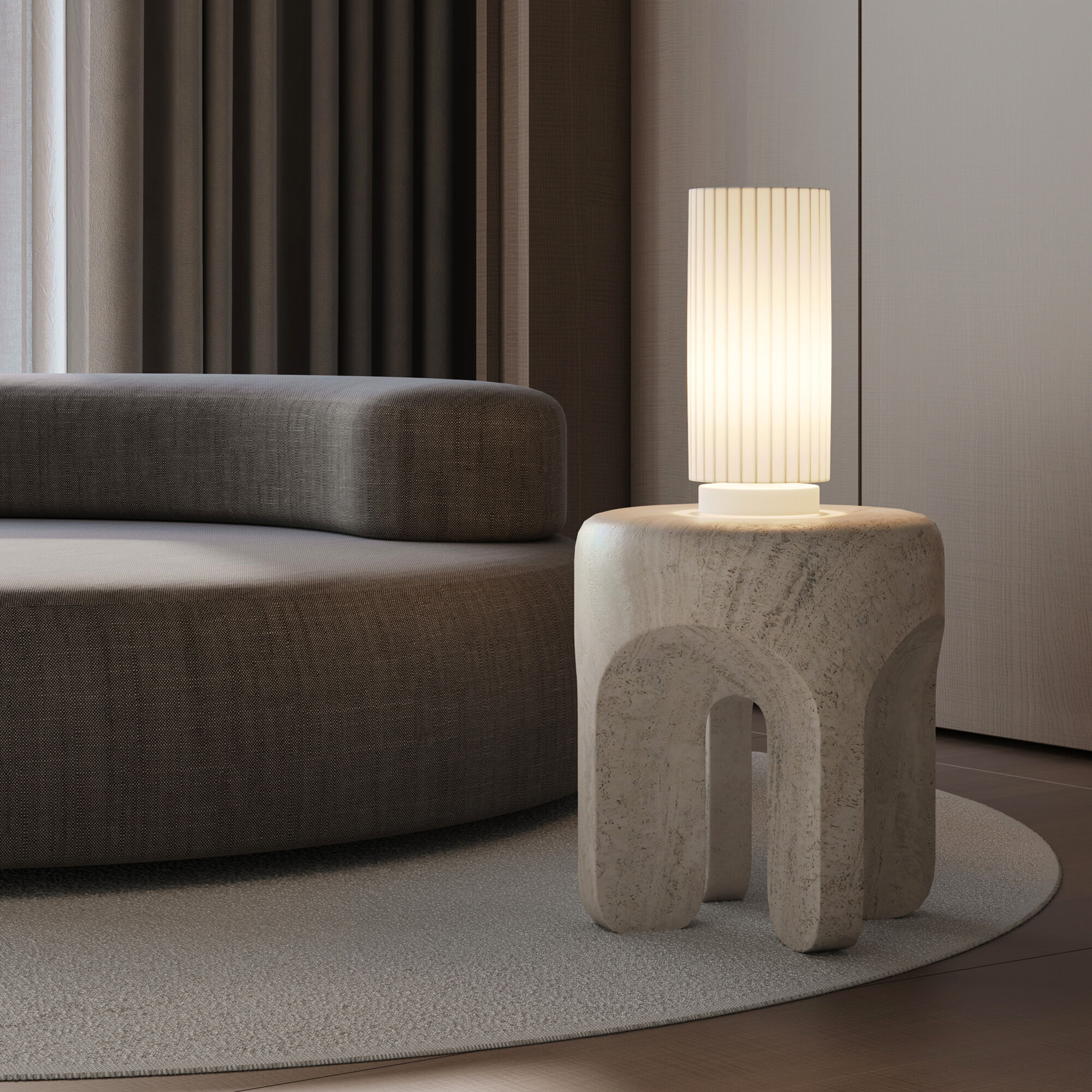 Вертикальные складки тканевого плафона придают минималистичнному дизайну современный и элегантный вид, который гармонично впишется в любой интерьер.