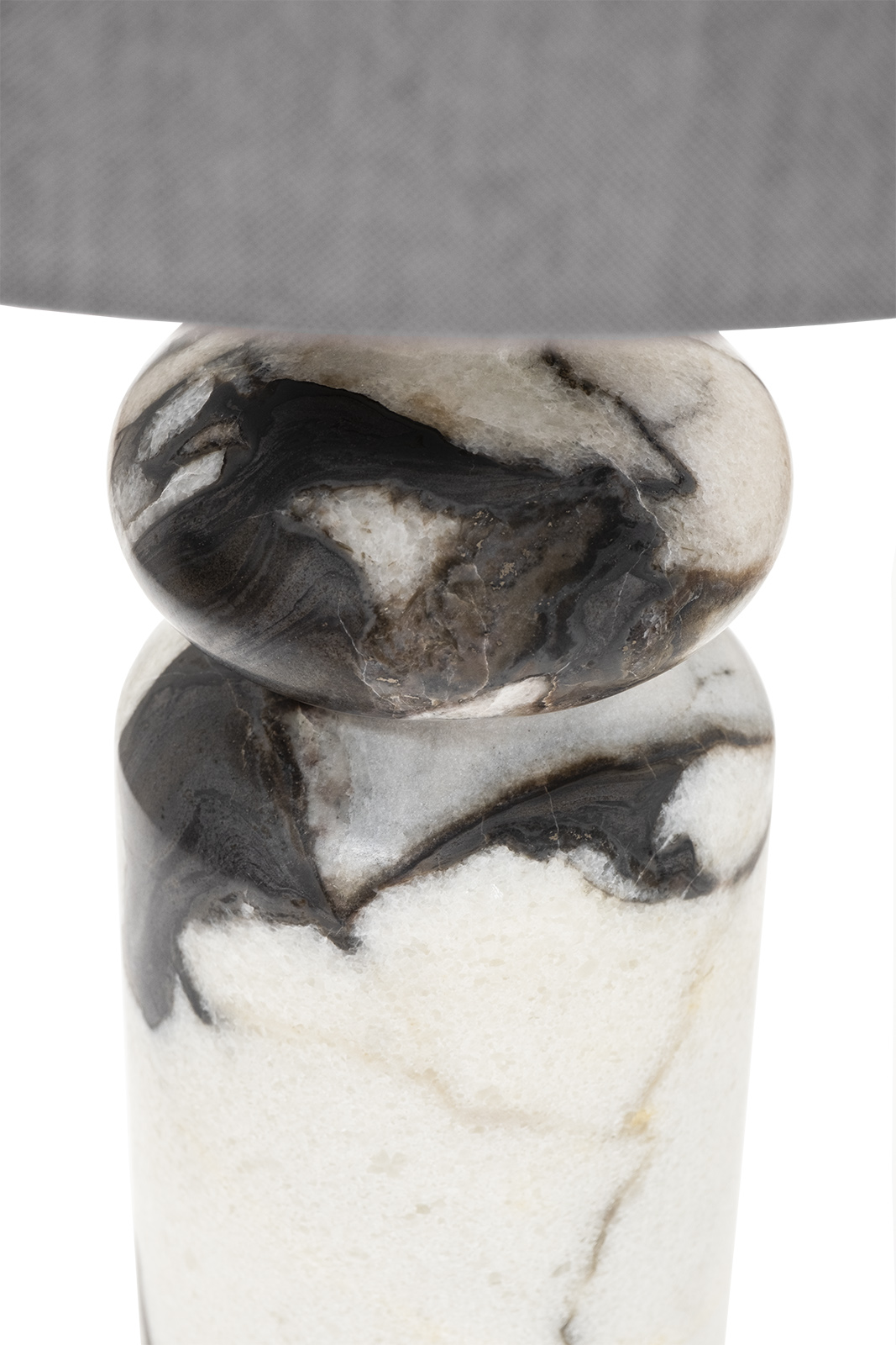 Эта настольная мраморная лампа создаёт в интерьере ощущение архитектурной выразительности и спокойной роскоши. Массивное основание из натурального камня демонстрирует природный рисунок и sculptural-форму, благодаря чему предмет выглядит как арт-объект. Мягкий, равномерный свет подчёркивает фактуру материала и привносит уют в пространство. Стильный серый абажур делает силуэт более сдержанным и современным, позволяя легко интегрировать модель в спальню, зону отдыха или кабинет. Такая лампа станет утончённым акцентом, который добавляет глубины и характерного шарма любому интерьеру.