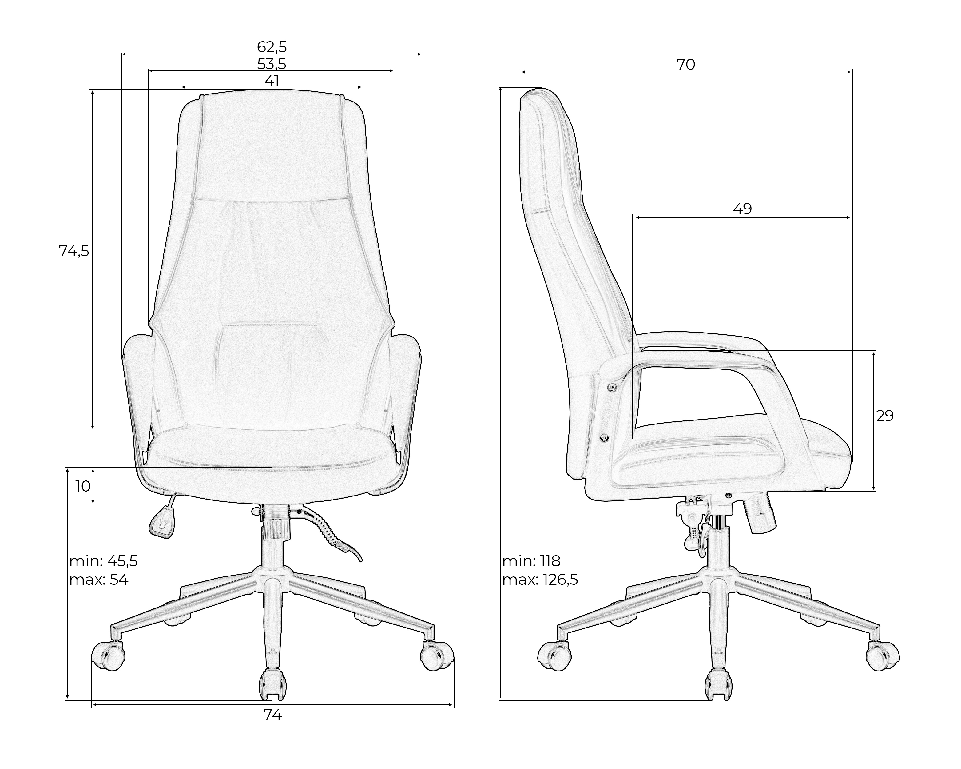 - Глубина сиденья: 490 мм