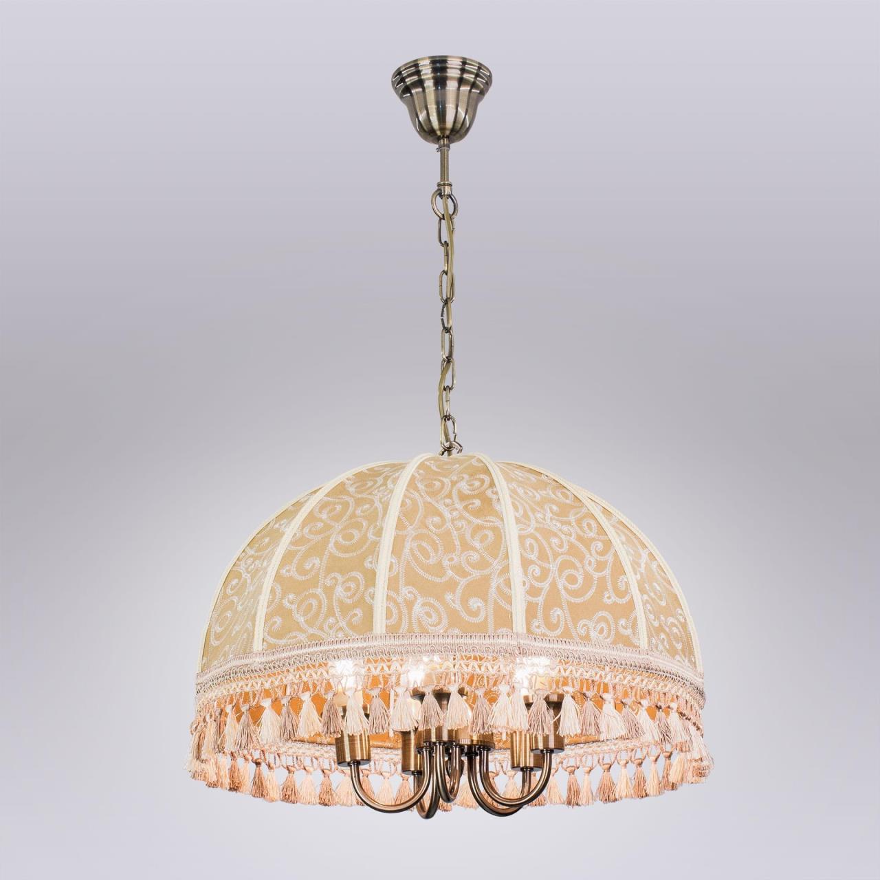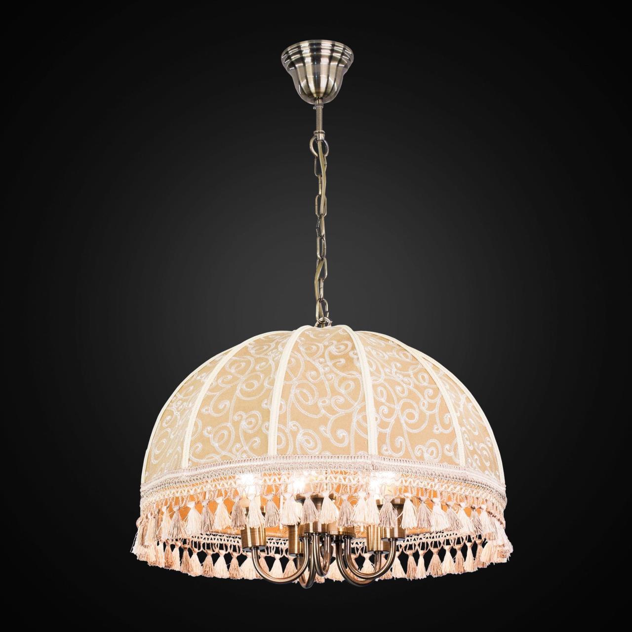Подвесная пятирожковая люстра на цепи Citilux Базель CL407155 с классическим абажуром. Корпус светильника металлический, цвет бронза. Абажур тканевый, цвета капучино, украшен изящной вышивкой и декорирован бахромой. Модель подойдёт для освещения уютной гостиной, кухни или веранды в загородном доме или на даче. Поможет создать комфортную атмосферу в кафе и ресторане, великолепно выглядит над столом. Подходит для всех типов потолков, в том числе натяжных, тип крепления – крючок. В изделии используются лампы с цоколем Е14, максимальной мощностью для ламп накаливания 60Вт, светодиодные лампы можно устанавливать более яркие. Высота регулируется от 50 до 135см, диаметр 51см, осветит около 14м².