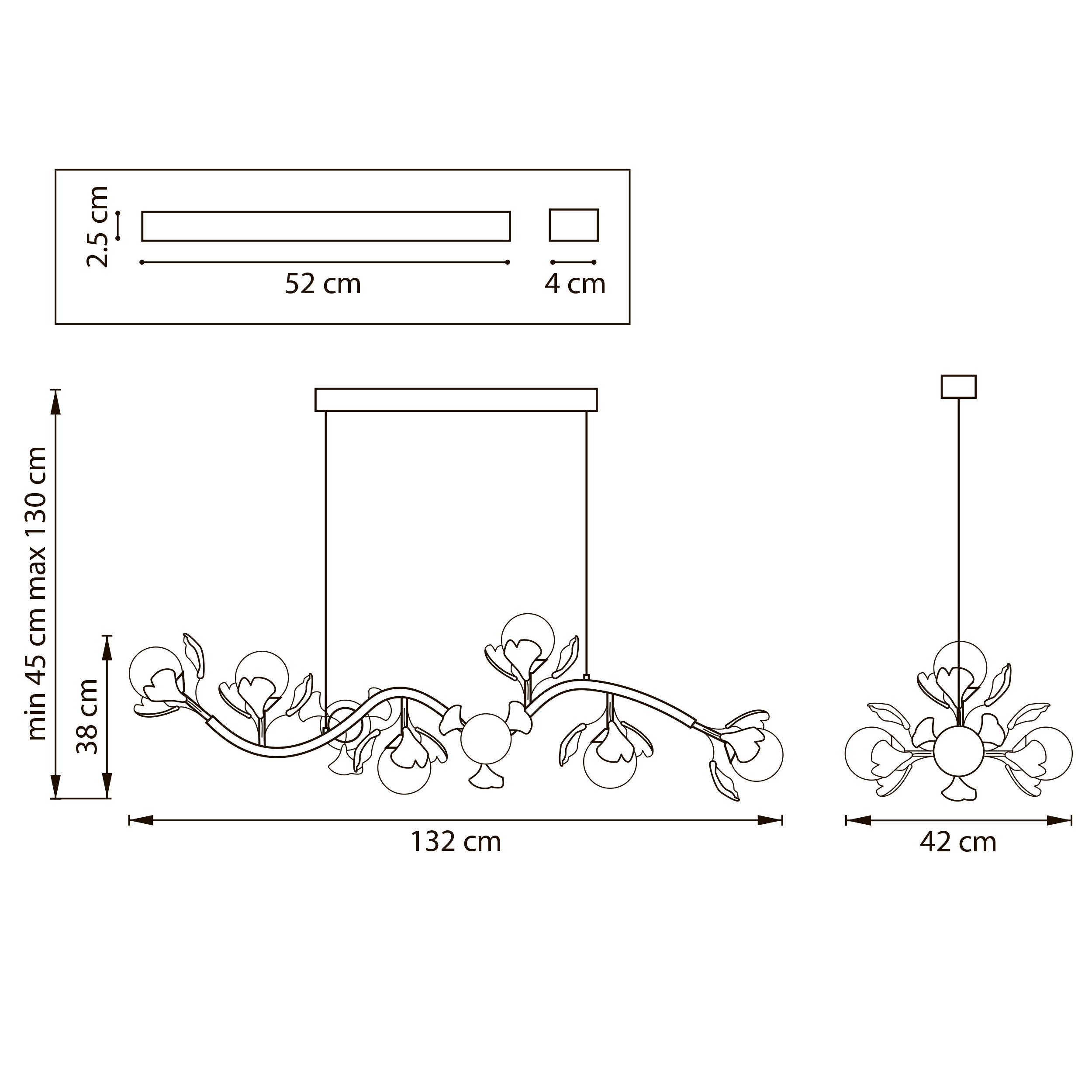 - Длина: 1320 мм (132 см)