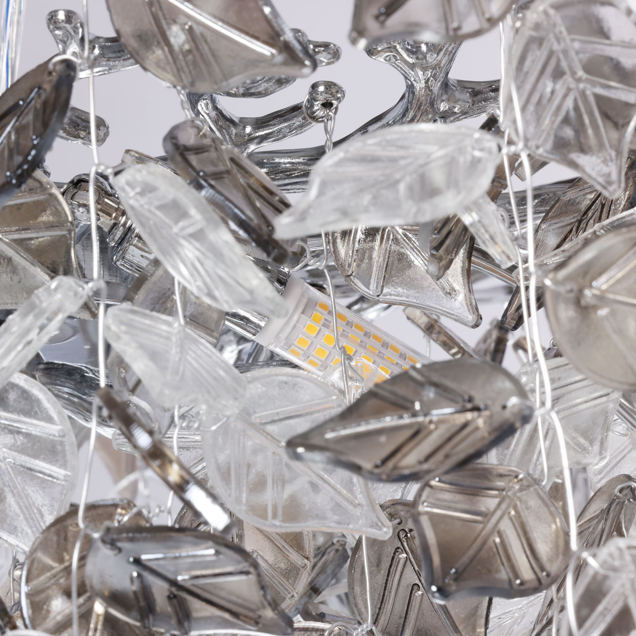 Привлекательная модель 467014008 от немецкого производителя MW-Light относится к коллекции -Лайма, изумительно подойдет для установки в спальне в современном стиле, в люстре 8 лампочек с цоколем G9 мощностью 60W площадь освещения помещения 16 кв.м. Материал арматуры металл цвета хром , потолочная чаша закрыта фактурным художественным литьем. Люстра декорирована подвесками из прозрачного и гальванизированного в дымчатый цвет стекла в форме листьев и крепится люстра на планку .Данную модель всегда можете купить в интернет-магазине 220svet.