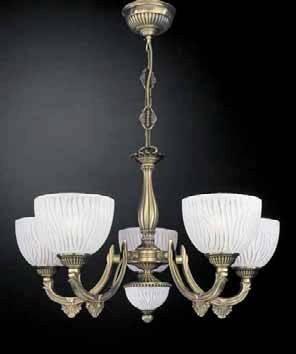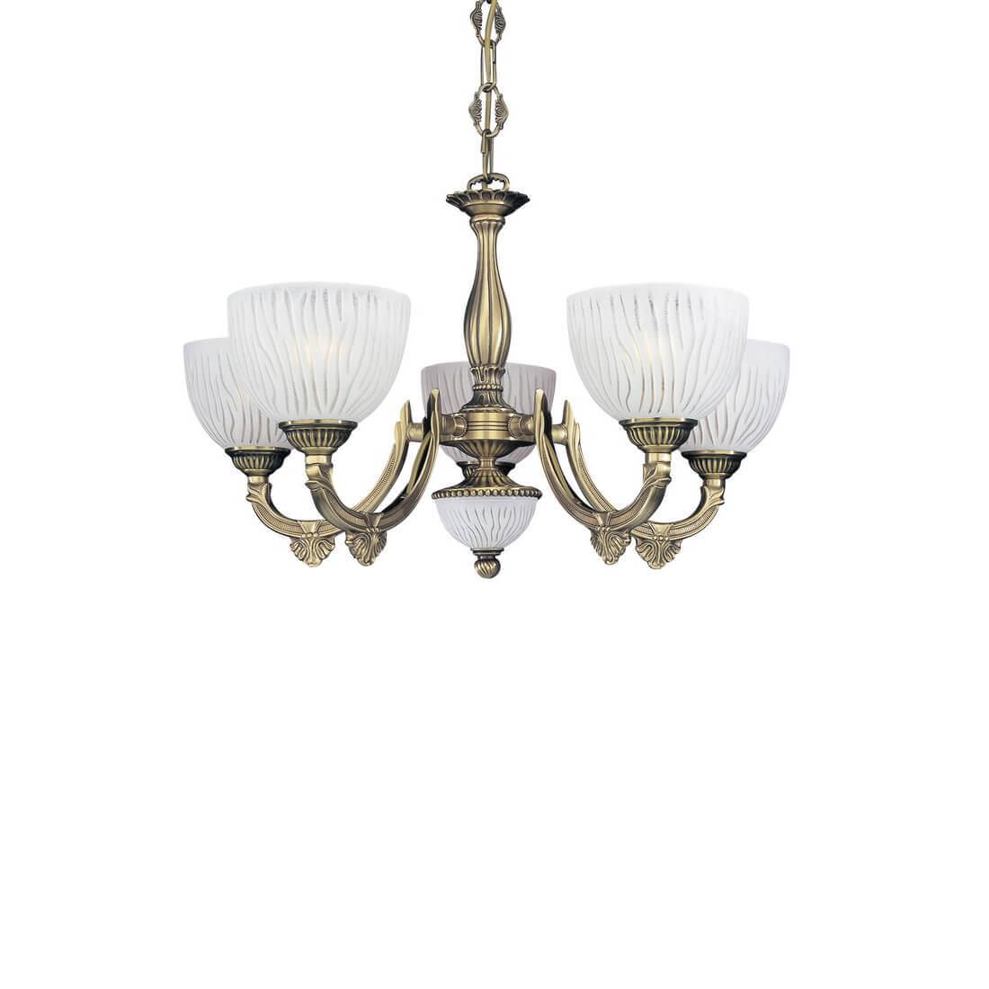 Подвесная люстра Reccagni Angelo L 5600/5 Итальянского производсва – уникальное сочетание высокого качества и удивительных фактур. Этот светильник Классического стиля хорошо подойдет Для гостиной и придаст помещению мягкий и приятный свет. Плафоны белые из стекла. Арматура бронза из металла. Кол-во ламп - 5шт. Общая мощность 300W