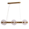 Металлическое основание подвесной люстры гальванизировано в цвет латуни. Светильник декорирован полусферами из прозрачного фактурного стекла.