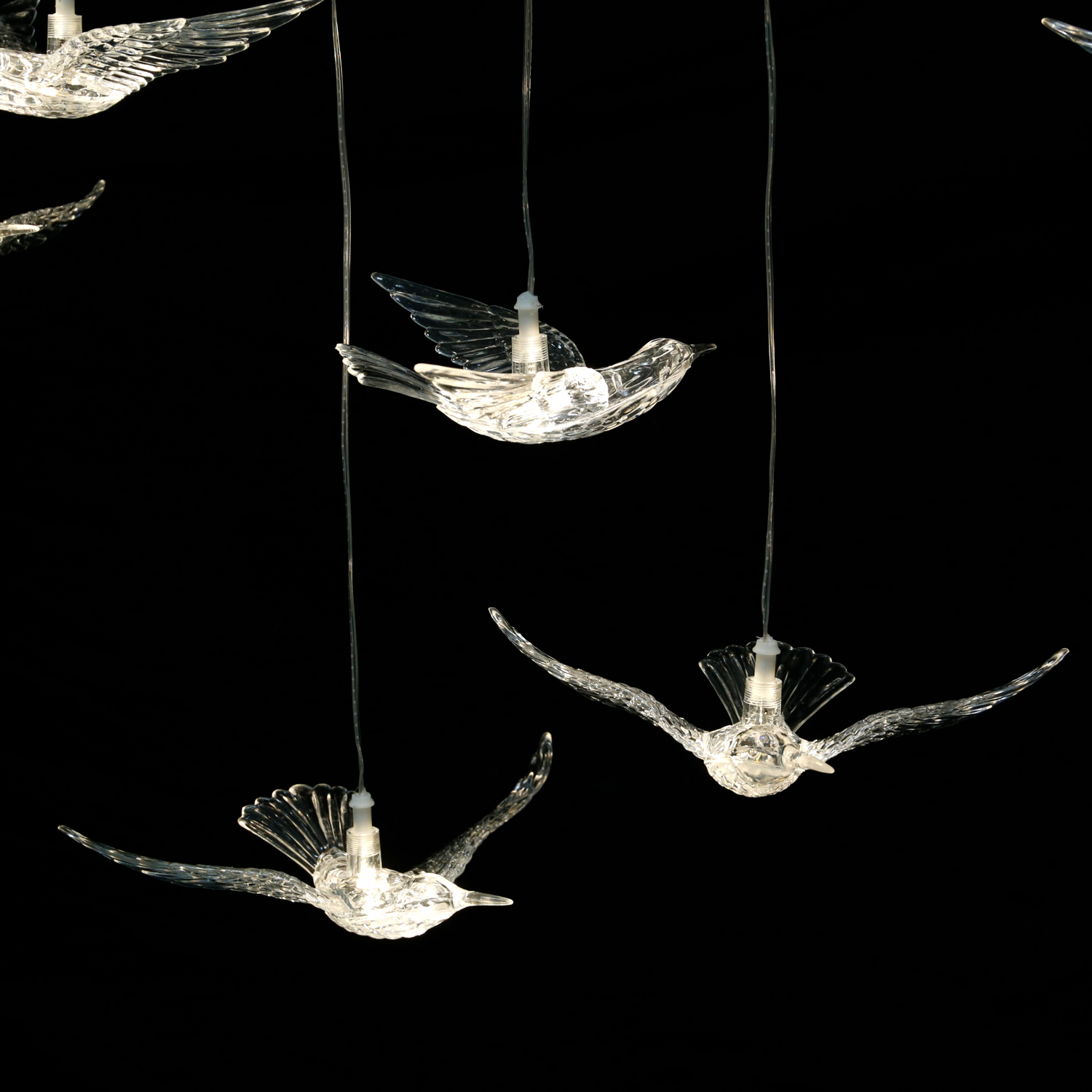 Подвесной светильник Delight Collection 12965-1P в виде птицы. Светильник выполнен из прозрачного акрила. Длина от клюва до хвоста 17 см, размах крыльев 25 см.
