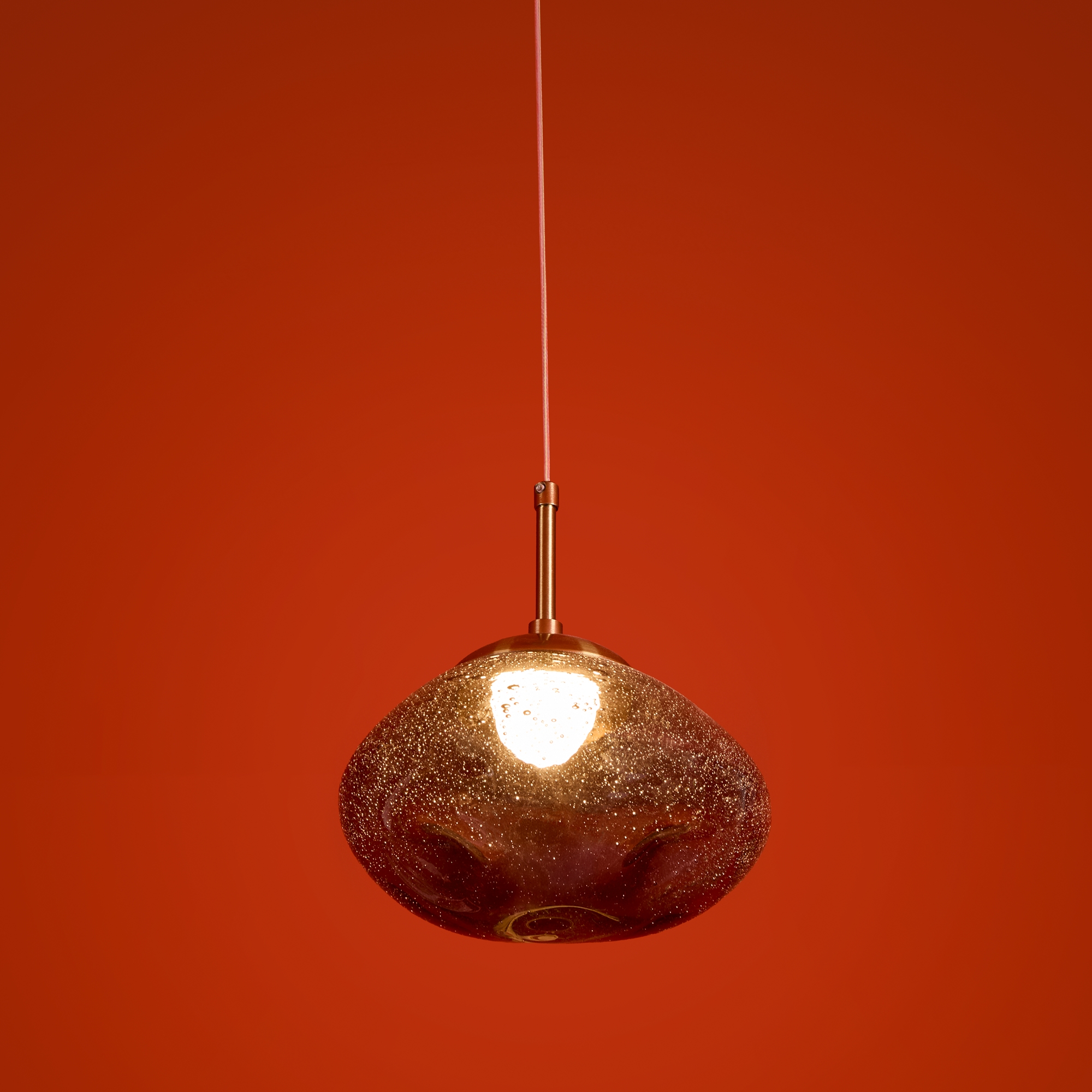 Арматура — металл. Стеклянные плафоны с пузырьками в трёх цветах: дымчатый, прозрачный, янтарный. Интегрированный LED источник света 3000К, Ra 80, угол 180°. Высота регулируется.