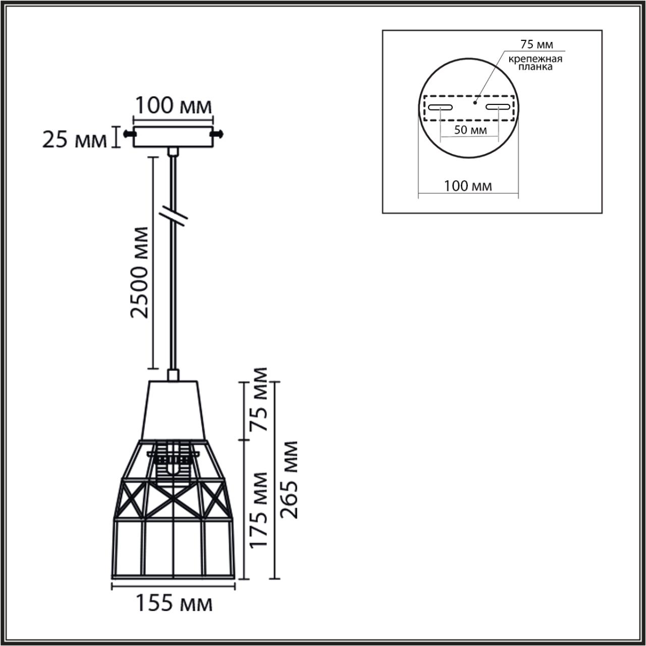 - Форма плафона: Конусный