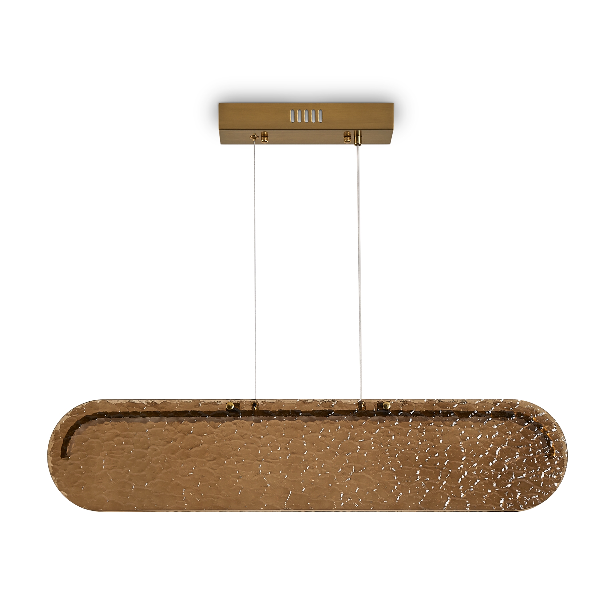 Стеклянные подвесные светильники Lunar с рельефным стеклом в двух цветовых вариантах: коньячном, белом матовым и прозрачным. Две формы плафонов: горизонтальный вытянутый и круглый, напоминающий очертания луны. Арматура — металл латунного цвета. Источник света - LED 3000 K. Дизайн сочетает современные формы с традиционными материалами, создавая эффектное освещение. Рельефное стекло добавляет интересную игру света и тени.