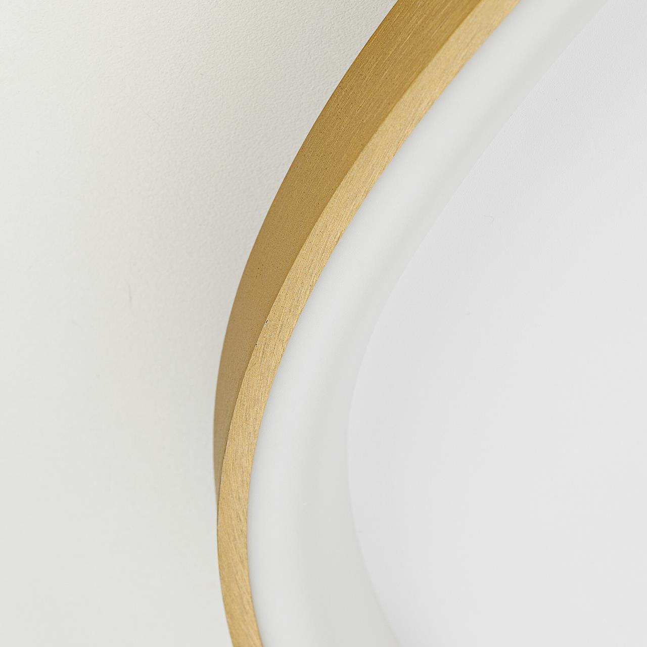 Корпус изделия — металлический, стильного золотистого оттенка. Рассеиватель из оптического полимера обеспечивает мягкое, равномерное освещение. LED-модуль с современными светодиодами гарантирует качественный яркий свет, который не вредит зрению.