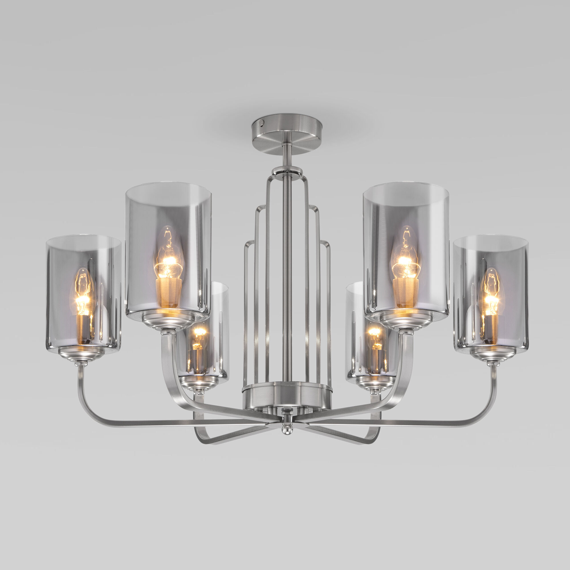 Организовать качественное освещение вам поможет эффектная потолочная люстра со стеклянными плафонами 60138/6 сатин-никель. Простые минималистичные формы и сдержанные тона станут прекрасным дополнением для вашего помещения.