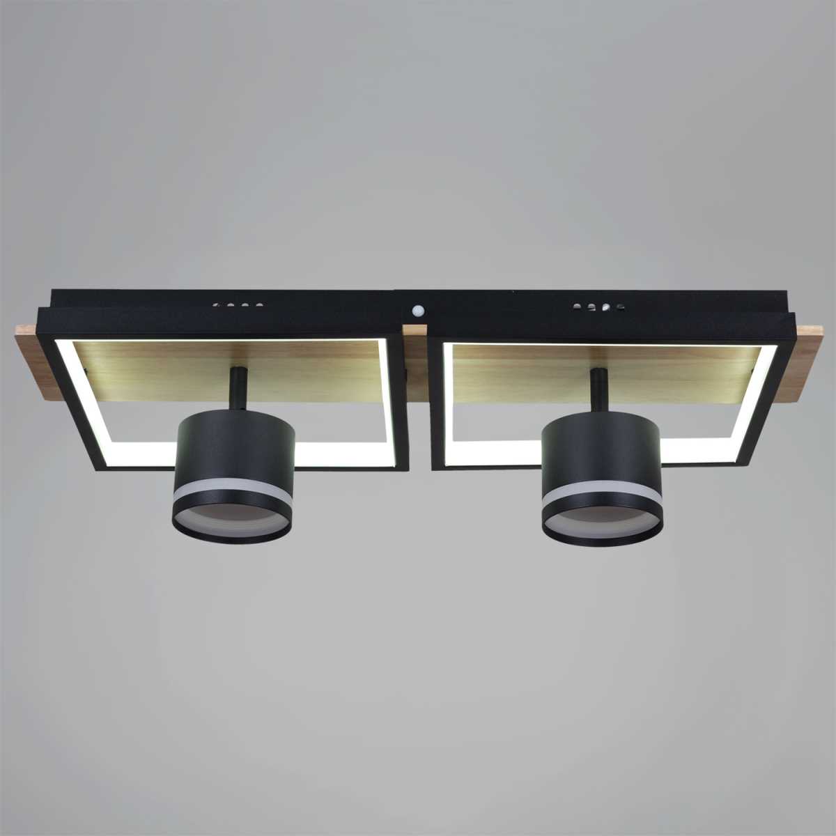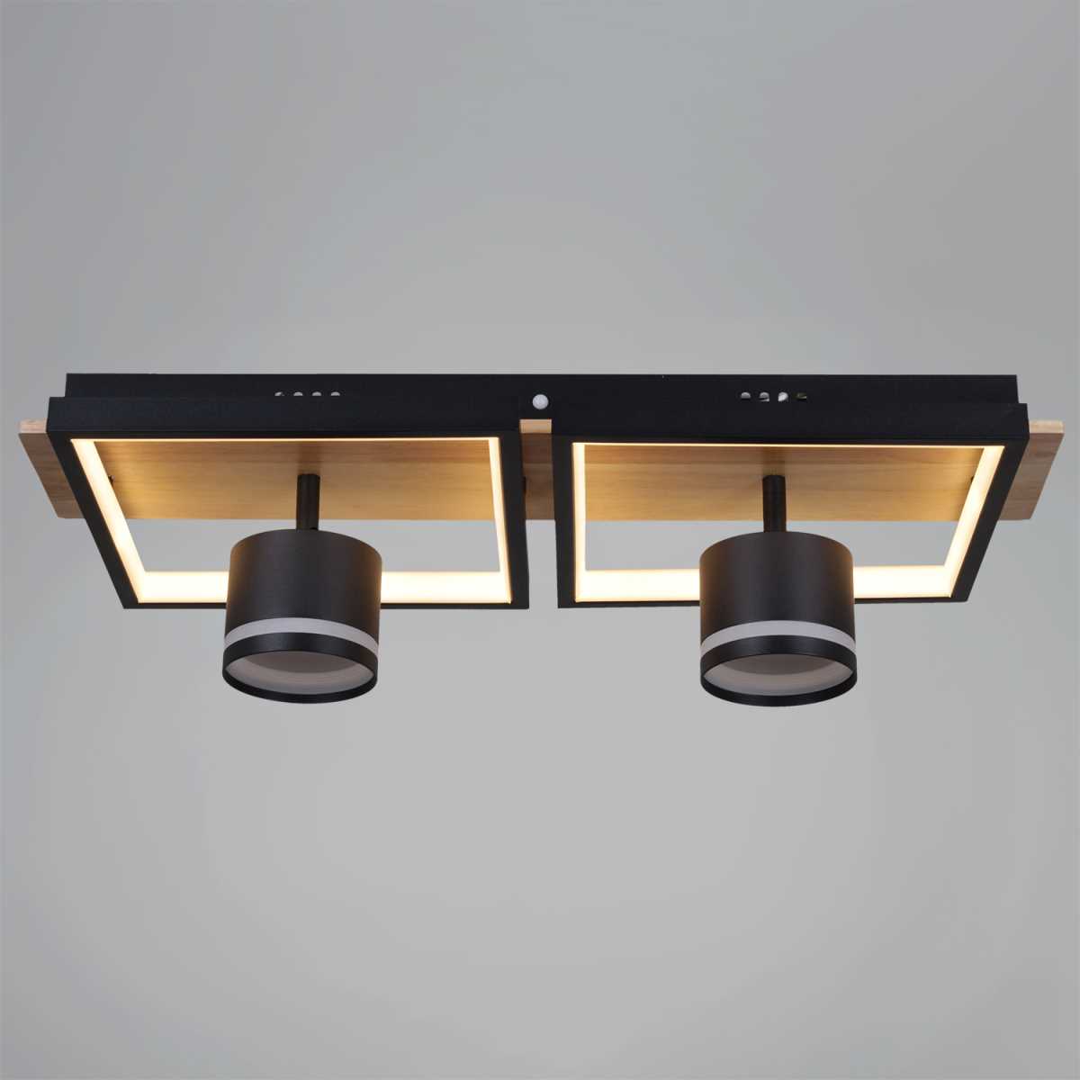 Купить "Потолочный светильник Reluce 19560-0.3-2+2 BK+WOOD"