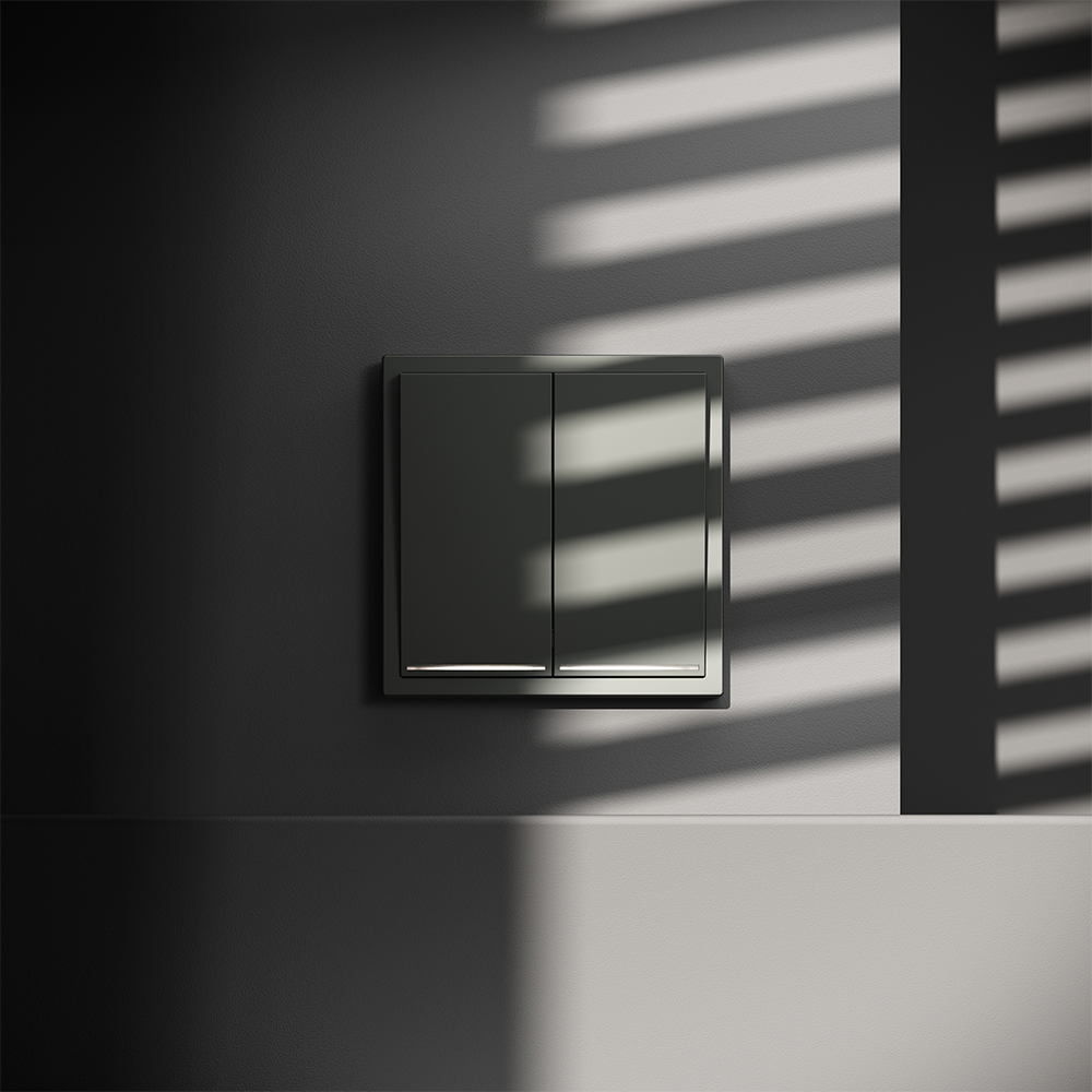 Купить "Проходной переключатель встраиваемый двухклавишный с подсветкой 10А Voltum S70 VLS020406 (титан)"