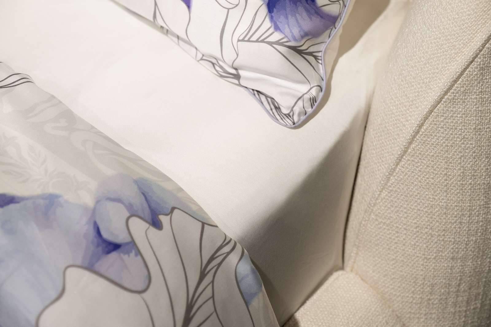 Простыня на резинке сшита из 100% ткани тенсель. Ткань изготовлена из экологически чистого волокна лиоцелл, полученного из древесины эвкалипта. Ткань мягкая, немного блестящая, как шелк, но при этом – не скользкая и легкая, как хлопок. Она отлично пропускает воздух и впитывает влагу, гипоаллергенна.