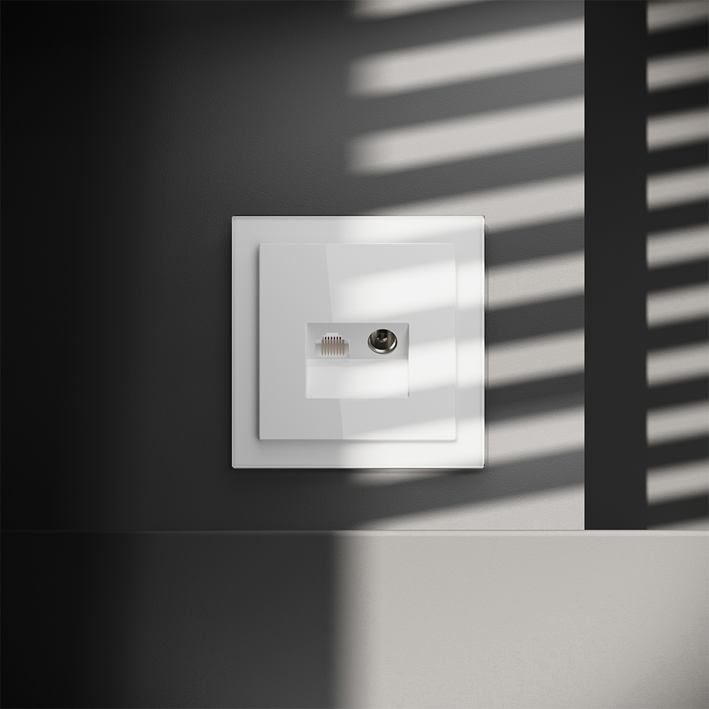 Купить "Розетка телевизионная встраиваемая TV+RJ45 кат. 6 Voltum S70 VLS060701 (белый глянцевый)"
