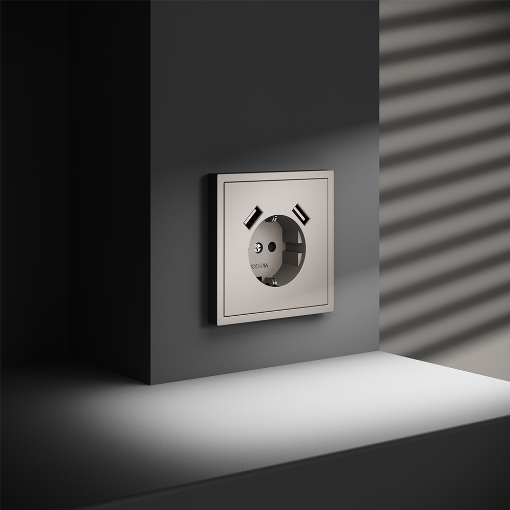 Купить "Розетка встраиваемая с заземлением и защитными шторками, 16А, с USB, A+A Voltum S70 VLS040403 (кашемир)"
