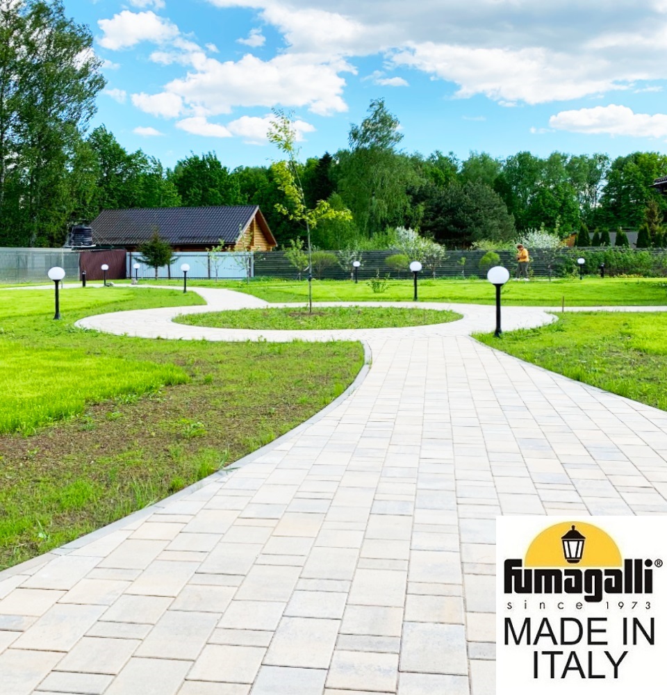 Садовый светильник-столбик FUMAGALLI серии GLOBE 250, модель GLOBE 250/MIZAR.R. Столбик освещения MIZAR.R и светильник GLOBE 250. Используются для архитектурного и ландшафтного освещения в стиле "классика". Место установки столбиков освещения - парковые дорожки, тротуары, газоны в парках и скверах, а так же ландшафтные и архитектурные объекты. Изготовлены в Италии, по уникальным технологиям "FUMAGALLI" из современного композитного полимера RESIN. Этот материал в 5 раз прочнее металла, не ржавеет, не окисляется, не выгорает на солнце, его не нужно красить. Все светильники пыле-влаго защищены по стандарту IP55 (Пыленепроницаемые, защита от водяных струй с любого направления). В комплекте идут крепежи и закладные элементы. Рассеиватель выполнен из антивандального, не мутнеющего и не горючего PMMA (ПолиМетилМетаАкрилат). Срок службы светильника - не менее 20 лет. Температура использования от -60 до +90. В серии GLOBE 250 есть фонари в настенном (BISSO/GLOBE 250, OFIR/GLOBE 250, MIRRA/GLOBE 250, PORPORA/GLOBE 250) подвесном (SICHEM/GLOBE 250) и наземном исполнении (IAFAET.R/GLOBE 250, ALOE.R/GLOBE 250, ARTU/GLOBE 250, GIGI/GLOBE 250, RICU/GLOBE 250, RICU/ISSO/GLOBE 250 1L, RICU/ISSO/GLOBE 250 2L, RICU/ISSO/GLOBE 250 3L) со столбами разной высоты, с разным количеством и конфигурацией голов. Консоли настенных фонарей и кронштейны светильников на столбах освщения могут устанавливаться вверх/вниз. Столбы выше 150 см имеют в основе мощную стальную трубу с двойной оцинковкой. При заказе требуется выбрать цвет корпуса, цвет плафона и тип патрона. По стилю и дизайну серия уличных светильников GLOBE 250 похожа на светильники большого размера GLOBE 400 и на светильники среднего размера GLOBE 300.