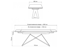 Керамический стол 140(200)х80 раскладной Woodville Старлайт snow alpin white / черный 622891