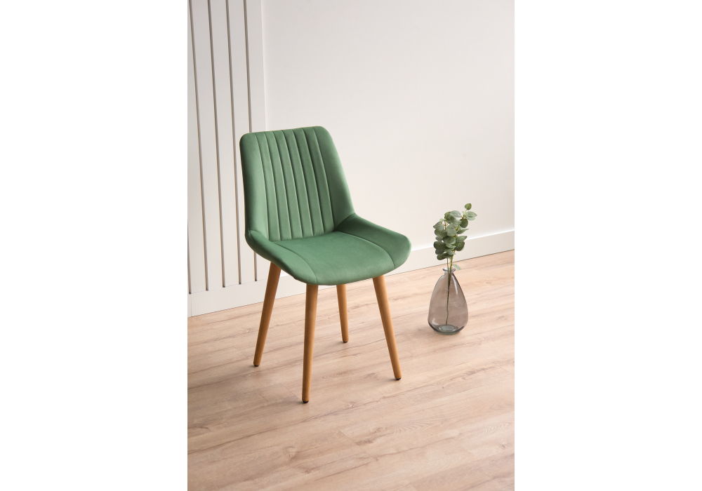 Материал каркаса - дерево; Материал сиденья - велюр; Материал обивки - велюр; Цвет ножек - натуральный; Ширина - 50; Глубина - 56; Высота - 82; Ширина сиденья - 47; Глубина сиденья - 42; Высота сиденья - 48;