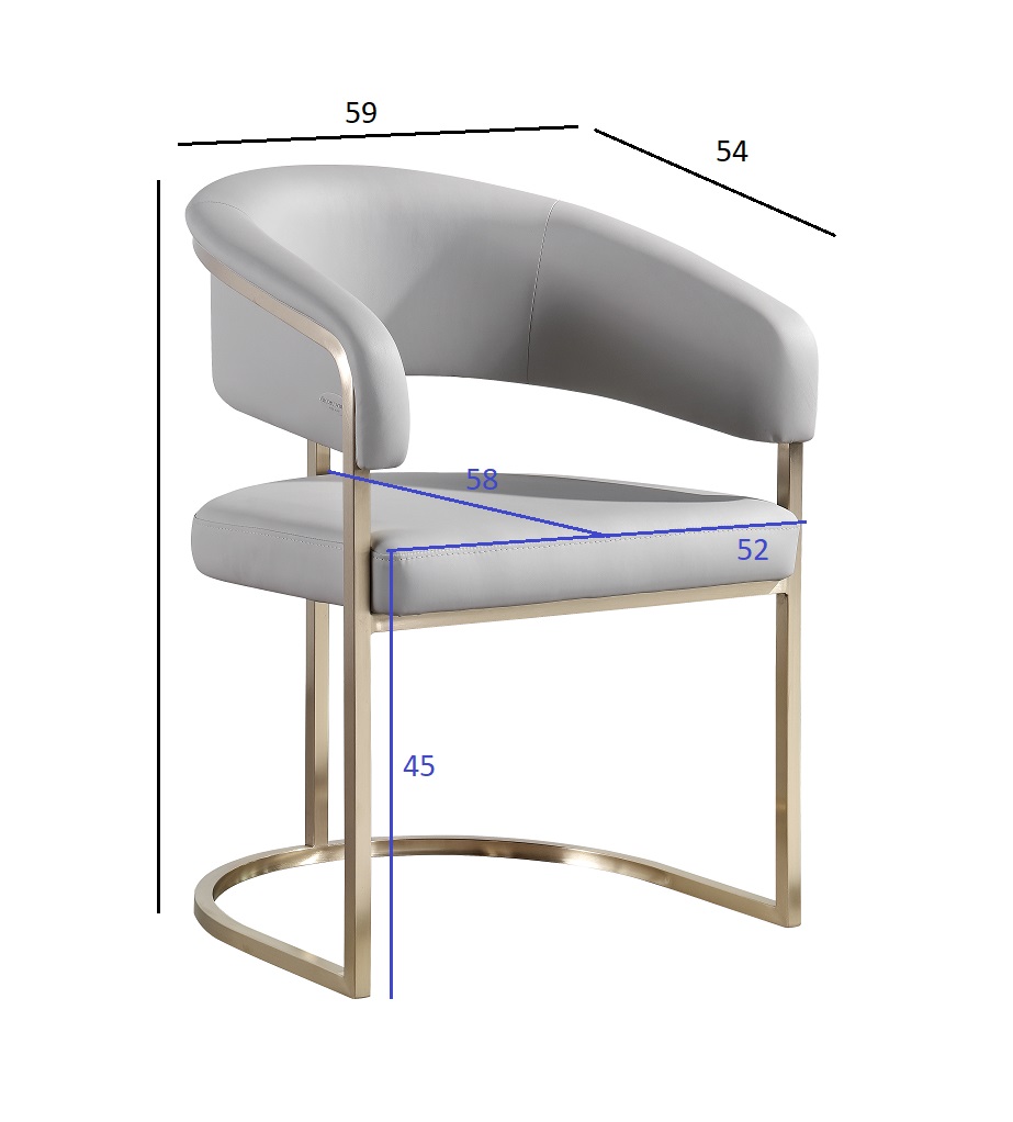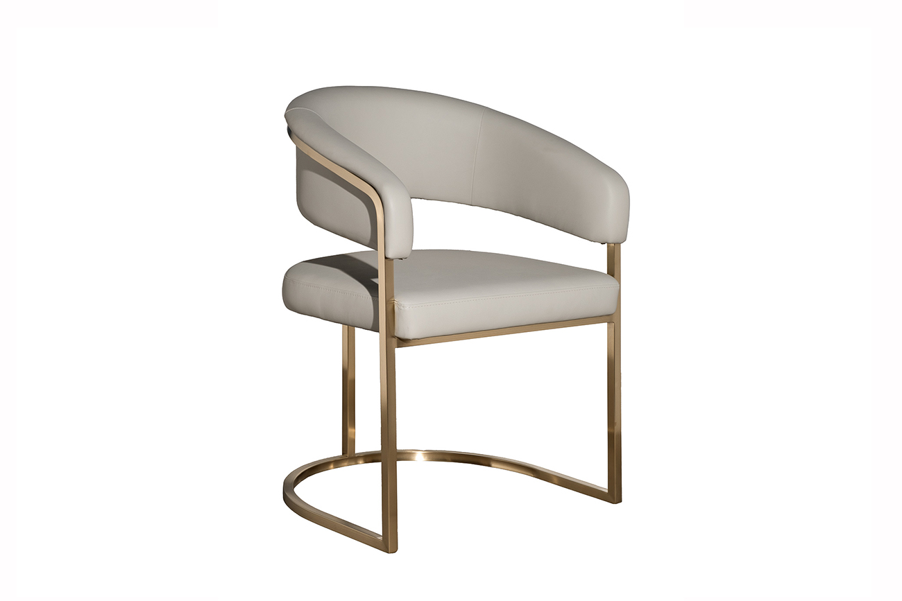 Этот обеденный стул с золотым каркасом словно создан для интерьеров, где ценят благородные акценты и продуманную эстетику. Светло-серая матовая экокожа выгодно подчеркивает изящество линий спинки и подлокотников, а основание в матовом золоте добавляет образу современную роскошь. Конструкция выглядит лёгкой, но сохраняет устойчивость и комфортную посадку для обеденной зоны или рабочего пространства. Такой светло-серый стул из экокожи становится не просто посадочным местом, а акцентной деталью интерьера, которая отражает вкус и статус владельца. Габариты сиденья - 52*58*45см, наполнитель - пенополиуретан.