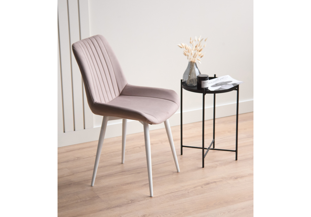 Материал каркаса - металл; Материал сиденья - велюр; Материал обивки - велюр; Цвет ножек - белый; Ширина - 50; Глубина - 56; Высота - 82; Ширина сиденья - 47; Глубина сиденья - 42; Высота сиденья - 48;