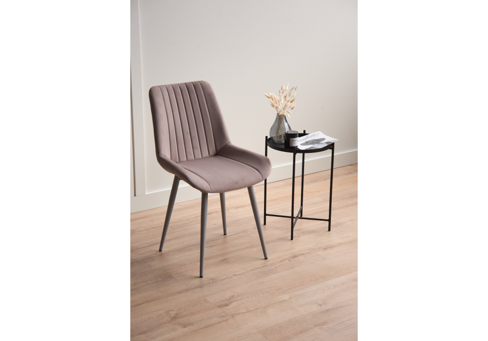 Материал каркаса - металл; Материал сиденья - велюр; Материал обивки - велюр; Цвет ножек - серый; Ширина - 50; Глубина - 56; Высота - 82; Ширина сиденья - 47; Глубина сиденья - 42; Высота сиденья - 48;