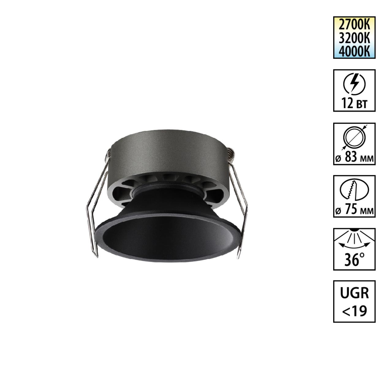 Купить "Светильник встраиваемый светодиодный с переключателем цветовой температуры Novotech NOVA 359852 черный"