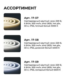 Светодиодный неон Apeyron 220В 6Вт/м 300лм/м 3000К (т/б), smd 2835, 144д/м, круглый, d=14мм, 50м, IP66 17-57