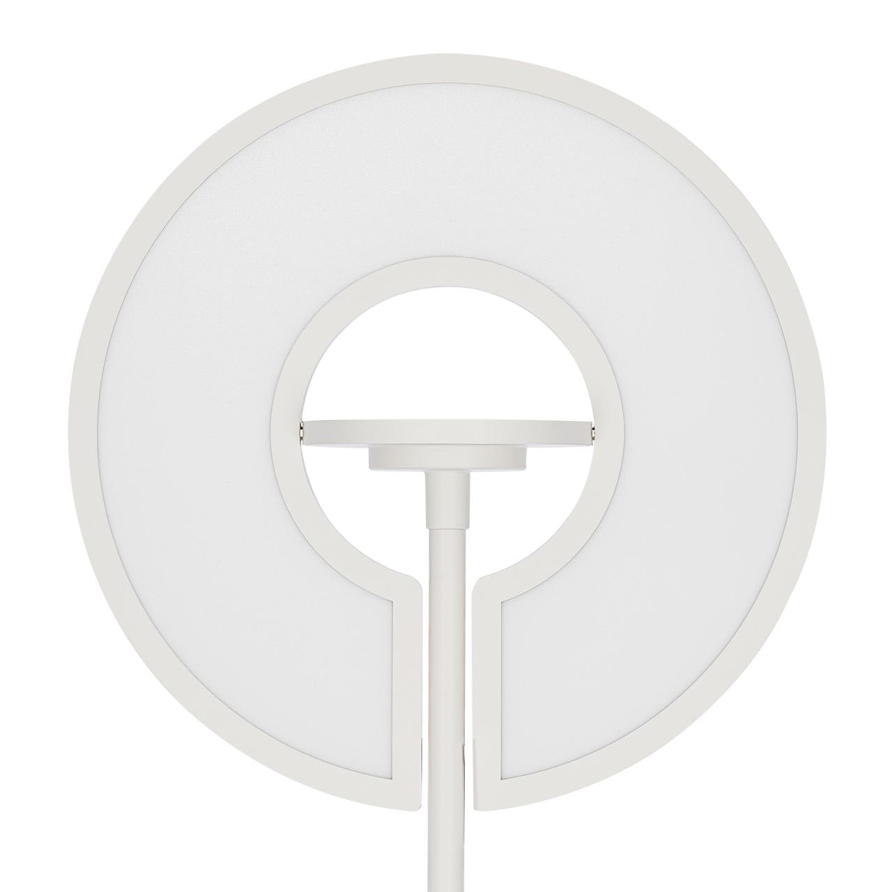Основание и стойка торшера — из металла, окрашенного белой матовой краской. Рассеиватель — из специализированного оптического полимера, основной модуль имеет поворотную конструкцию. При этом основной свет обеспечивает равномерное, комфортное для глаз освещение без мерцания и пульсаций, а дополнительный RGB‑модуль открывает безграничные возможности для экспериментов с цветом. Мощность основного модуля — 40Вт, rgb-подсветки — 6Вт.