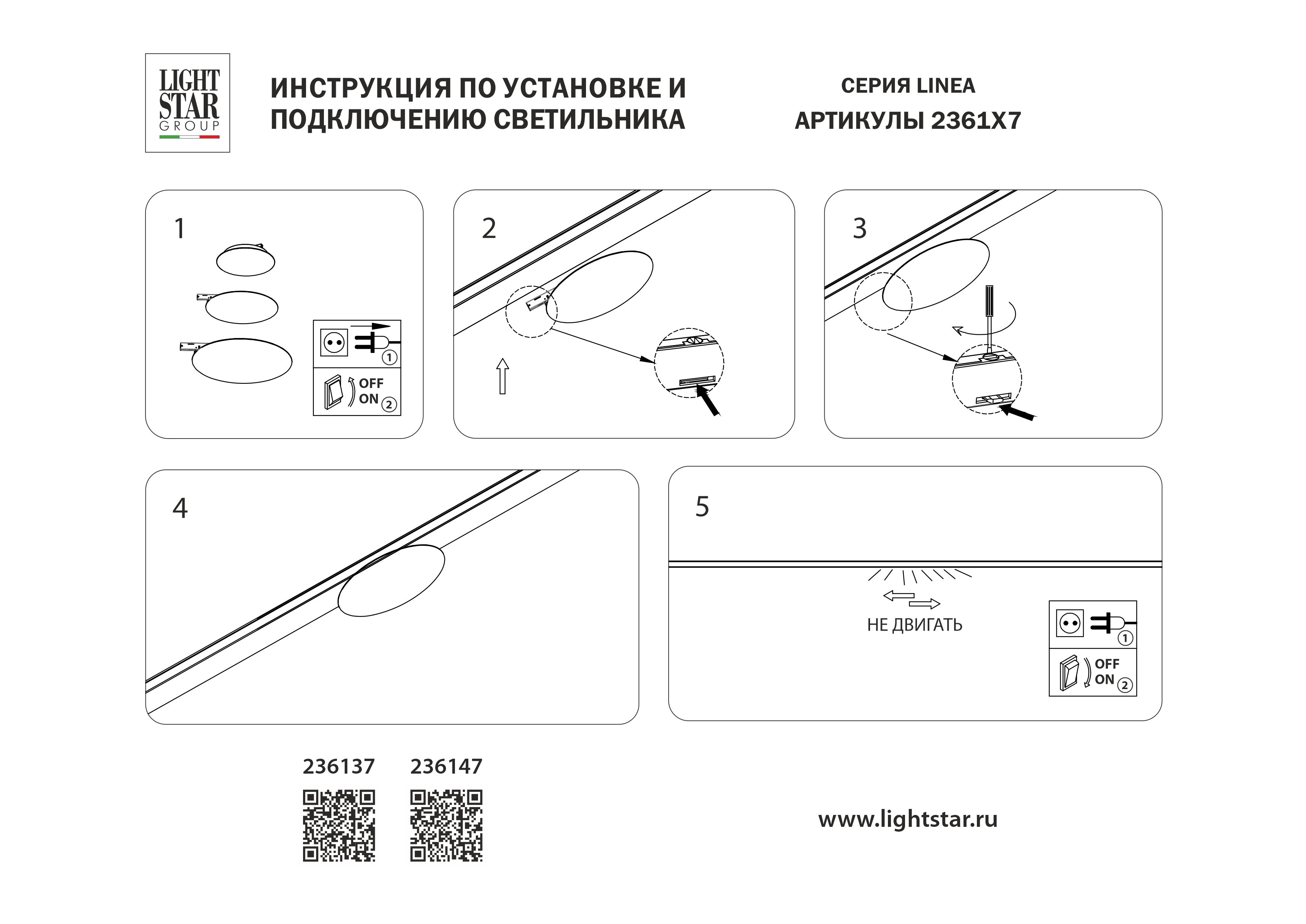 Трековый однофазный светильник 24V 5W 200° 3000K Lightstar Linea 236137 во Владивостоке