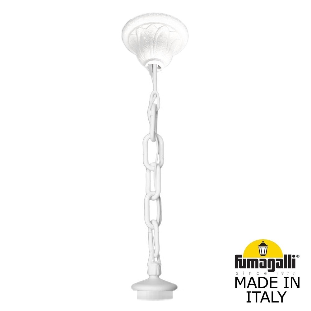 Декоративная цепочка подвес FUMAGALLI, модель SICHEM. Подвес длиной 500 мм для светильника малого и среднего размера. Классический дизайн "под литье", имитация чугунных кованых цепей позапрошлого века. В основании подвеса расположена монтажная петля, монтажный крючок в комплект поставки не входит. На другой стороне подвеса расположено декоративное крепление к крышке фонаря PINNACLES, с помощью которого светильник прочно и герметично соединяется с подвесом. Звенья цепи изготовлены разборными, что позволяет регулировать длину в любую сторону. Для производства используется сверхпрочный технологичный полимерный материал RESIN, который защищает поверхность от агрессивного воздействия всех атмосферных факторов (покрытие не ржавеет, не выгорает на солнце, не боится солей и реагентов). Не проводит электричество!!! Подвес и светильники не требуют заземления и относятся к 2 классу электробезопастности. Посадочный размер для фонарей равен 60мм.. Срок службы - не менее 20 лет. Температура использования от -60 до +90.