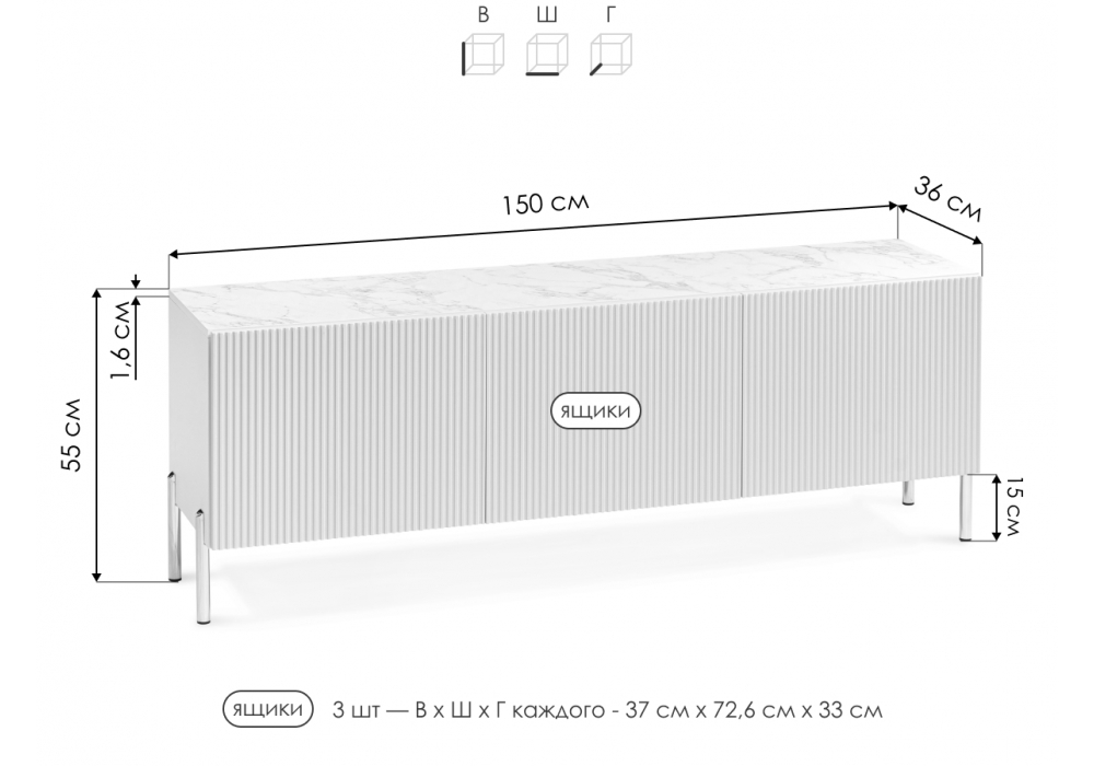 Материал каркаса - ЛДСП; Ширина - 150; Глубина - 36; Высота - 55;