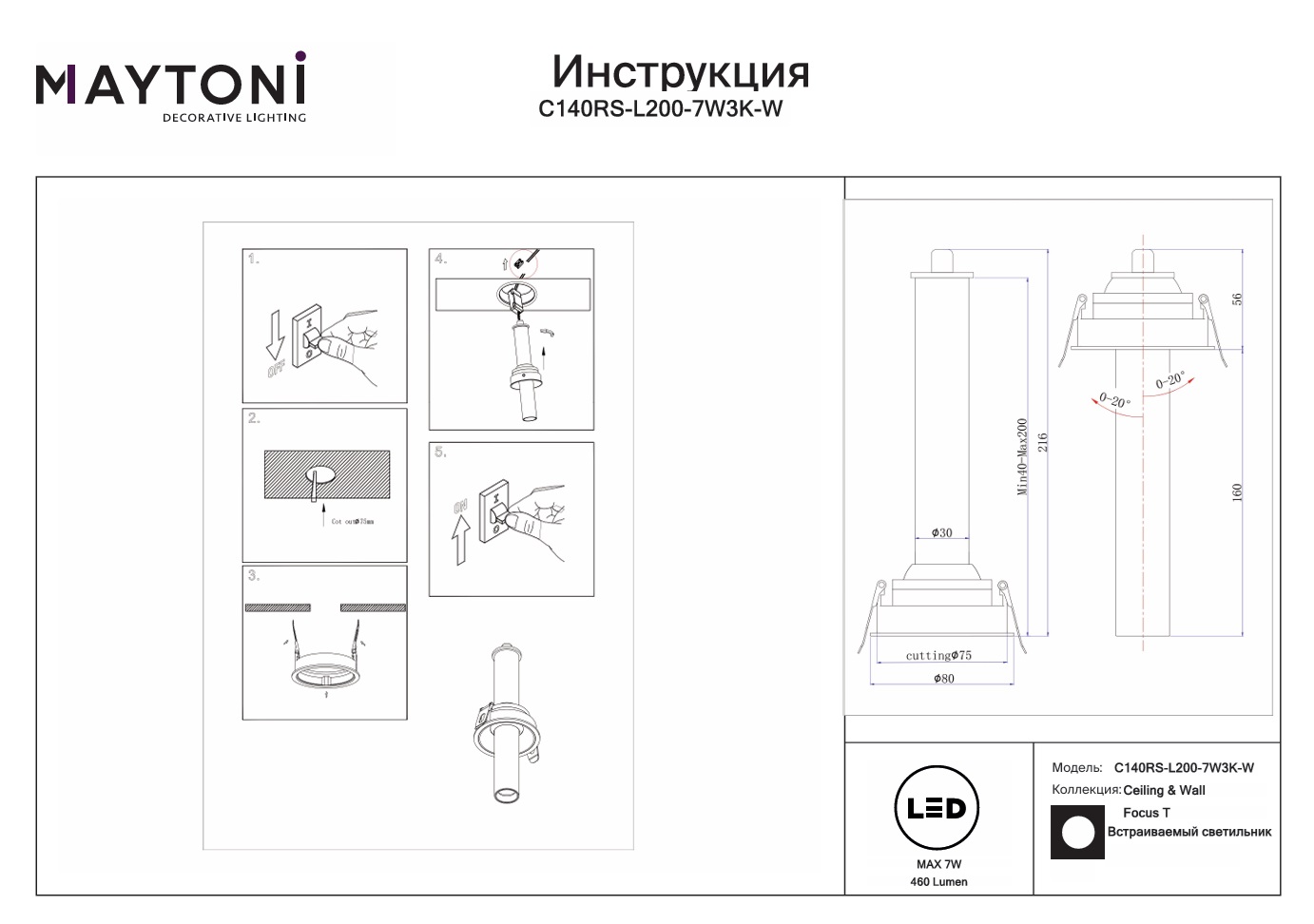 Все характеристики C140RS-L200-7W3K-W