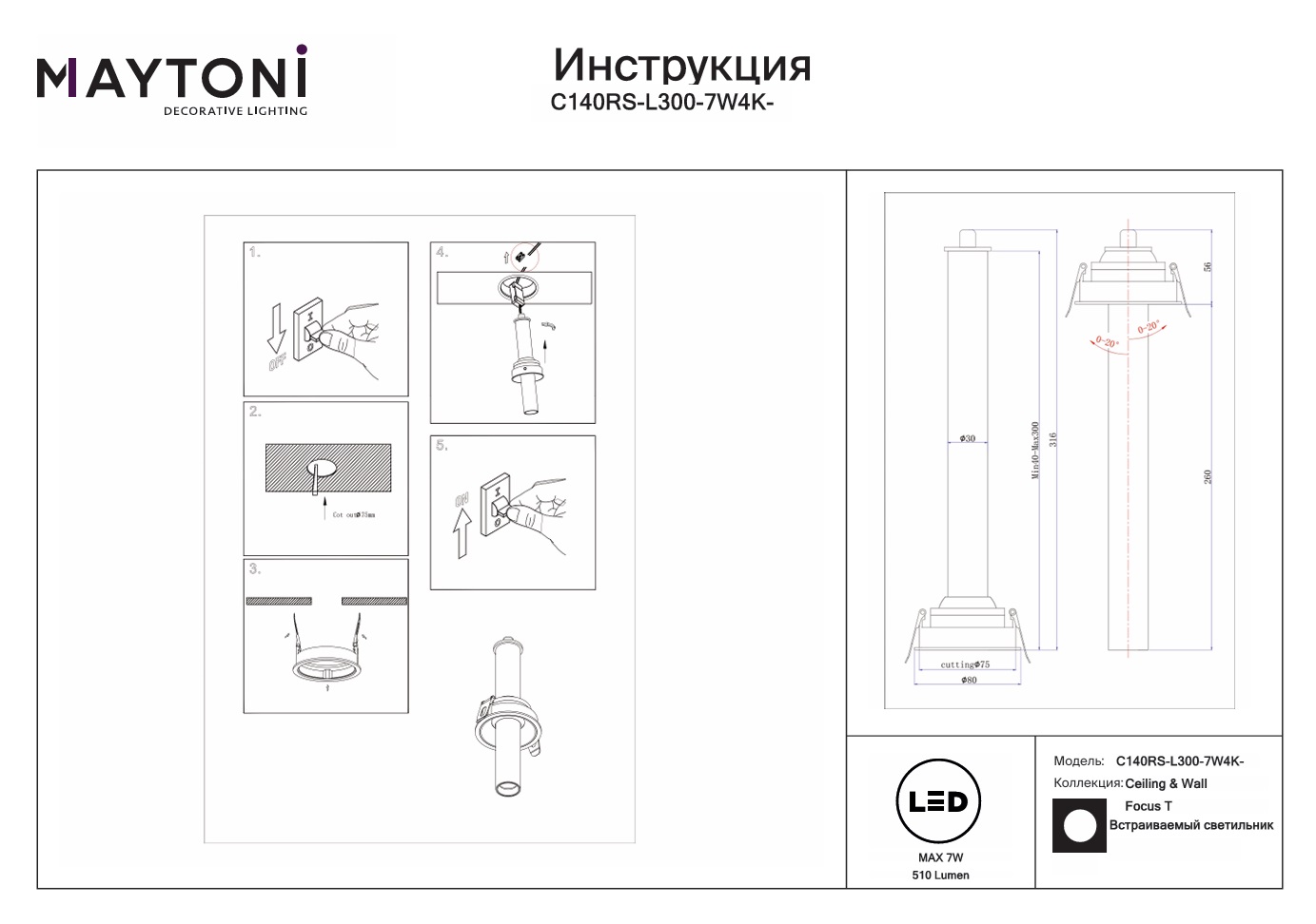 Все характеристики C140RS-L300-7W4K-BBS